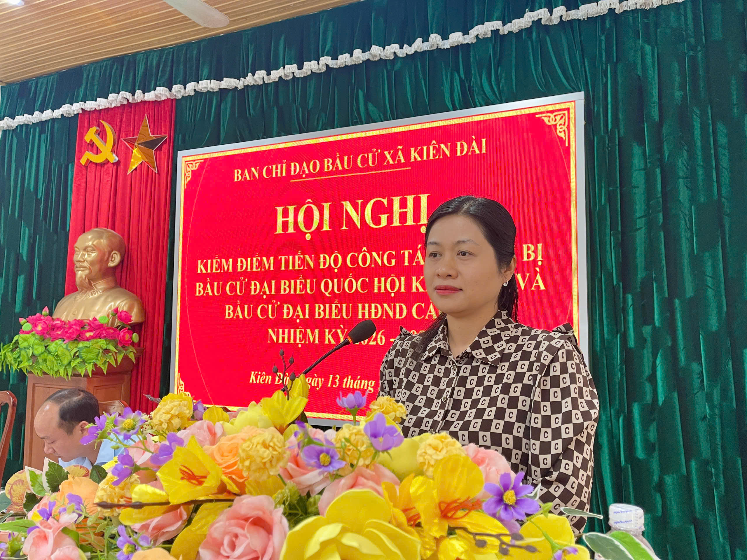 Tại hội nghị, các đại biểu đã nghe báo cáo tiến độ triển khai các nhiệm vụ chuẩn bị cho cuộc bầu cử trên địa bàn xã. Theo đó, thời gian qua, Ban Chỉ đạo bầu cử xã Kiên Đài đã tập trung lãnh đạo, chỉ đạo triển khai các nhiệm vụ phục vụ công tác bầu cử bảo đảm đúng quy định và hướng dẫn của cấp trên. Công tác tuyên truyền về bầu cử được đẩy mạnh với nhiều hình thức phong phú như tuyên truyền trên hệ thống loa truyền thanh, treo pano, băng rôn, khẩu hiệu tại các trục đường chính và khu dân cư, góp phần nâng cao nhận thức của cán bộ, đảng viên và Nhân dân về ý nghĩa, tầm quan trọng của cuộc bầu cử.