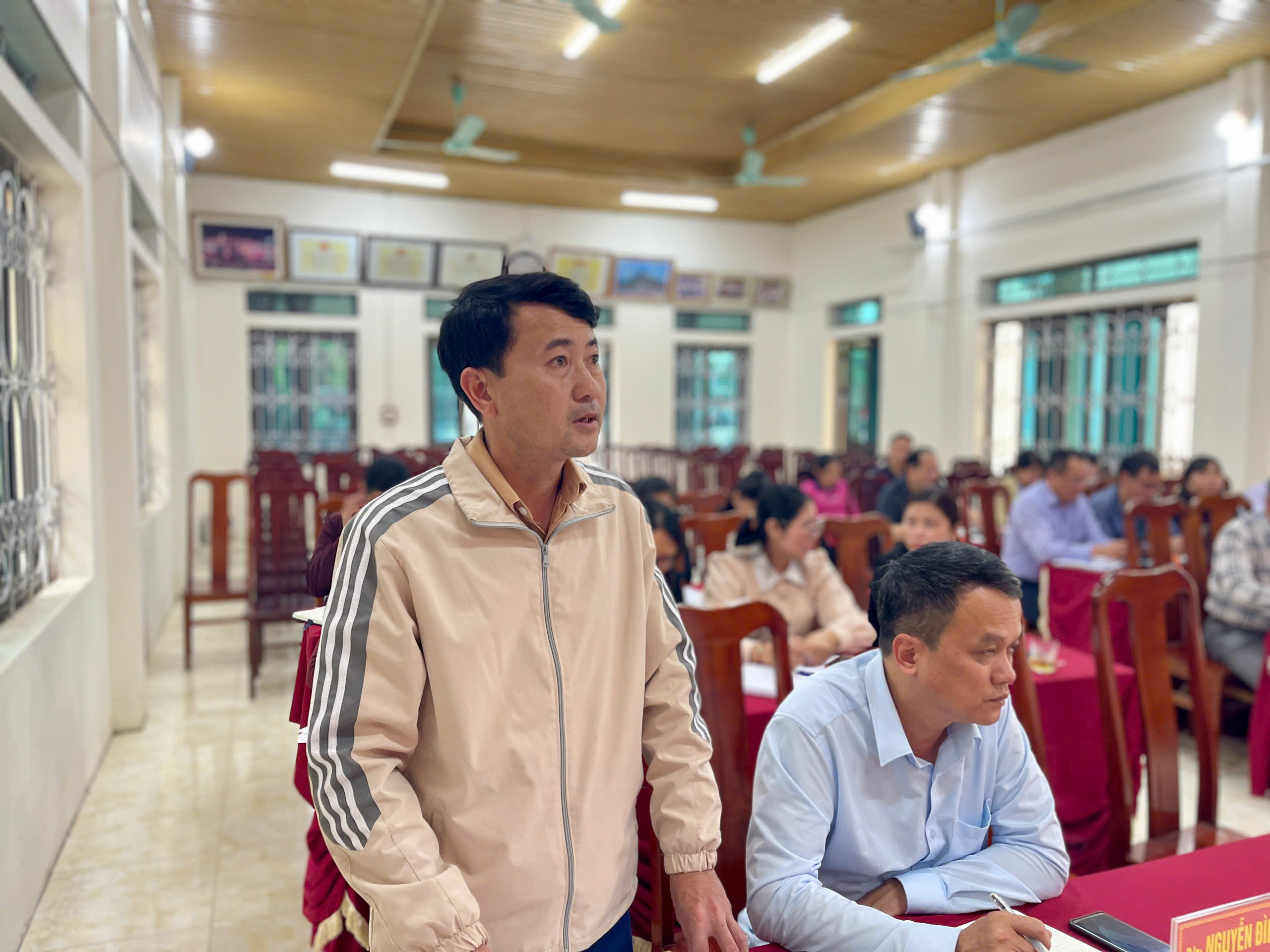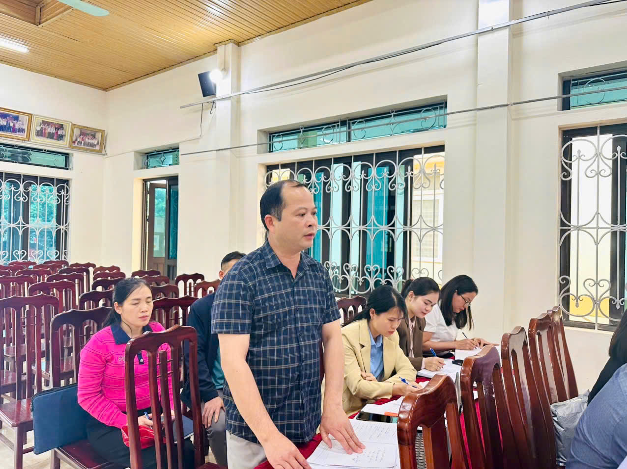 Đồng chí Bùi Mạnh Hùng, Phó Bí thư Đảng ủy, Chủ tịch UBND xã, Phó Trưởng Ban Chỉ đạo bầu cử xã báo cáo tiến độ triển khai các nhiệm vụ chuẩn bị cho cuộc bầu cử trên địa bàn xã