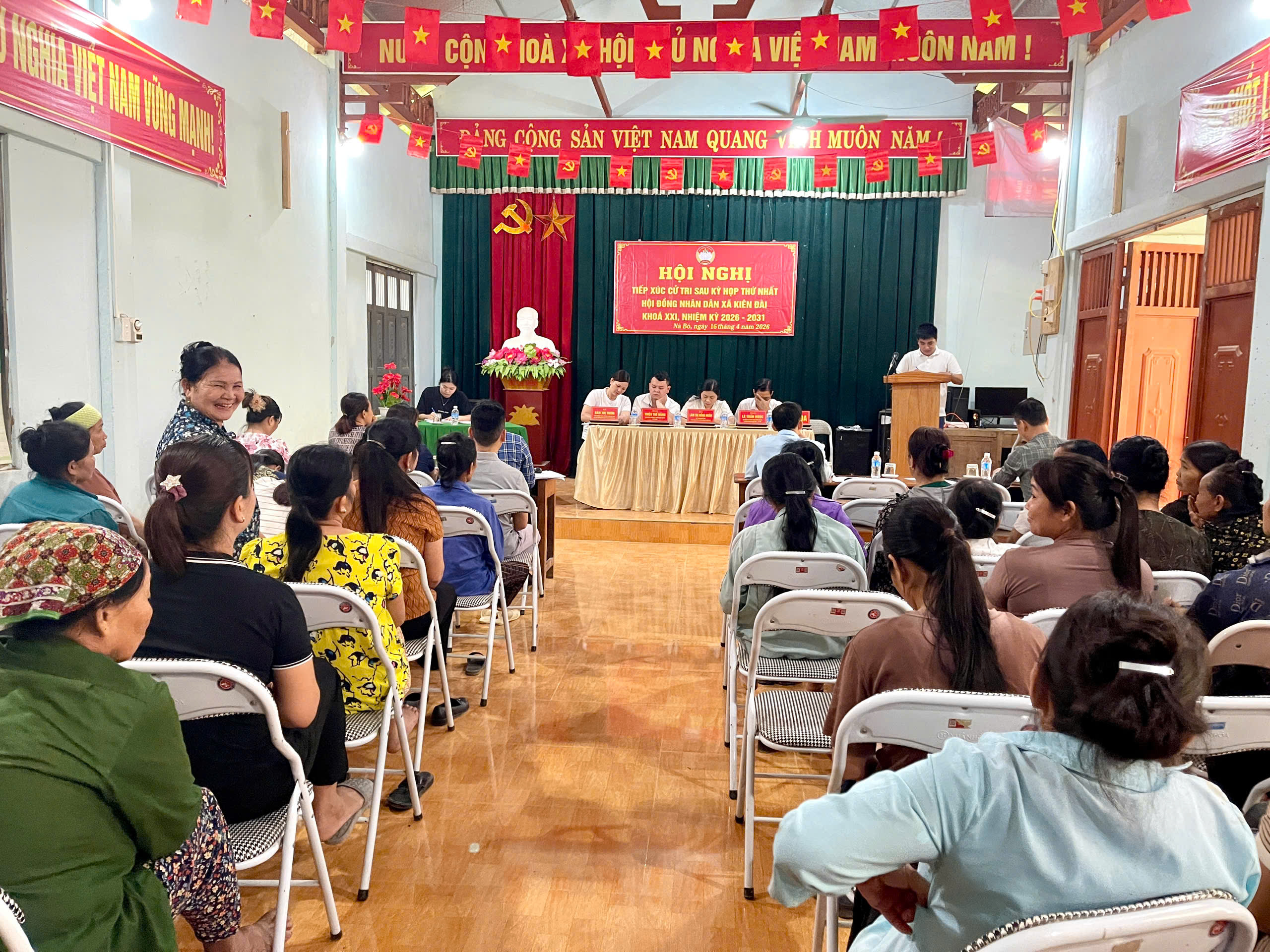 Tại buổi tiếp xúc, đại diện các Tổ đại biểu đã thông tin tới cử tri về kết quả bầu cử đại biểu Quốc hội khóa XVI và đại biểu Hội đồng nhân dân các cấp nhiệm kỳ 2026–2031; kết quả Kỳ họp thứ nhất Hội đồng nhân dân xã Kiên Đài khóa XXI; đồng thời tuyên truyền các nghị quyết đã được Hội đồng nhân dân xã ban hành; tình hình phát triển kinh tế – xã hội, quốc phòng – an ninh trên địa bàn.
