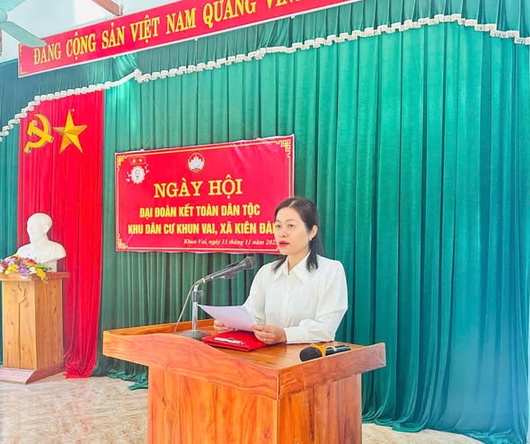 Đồng chí Lâm Thị Hồng Ngân, Bí thư Đảng ủy, Chủ tịch HĐND xã phát biểu tại ngày hội.