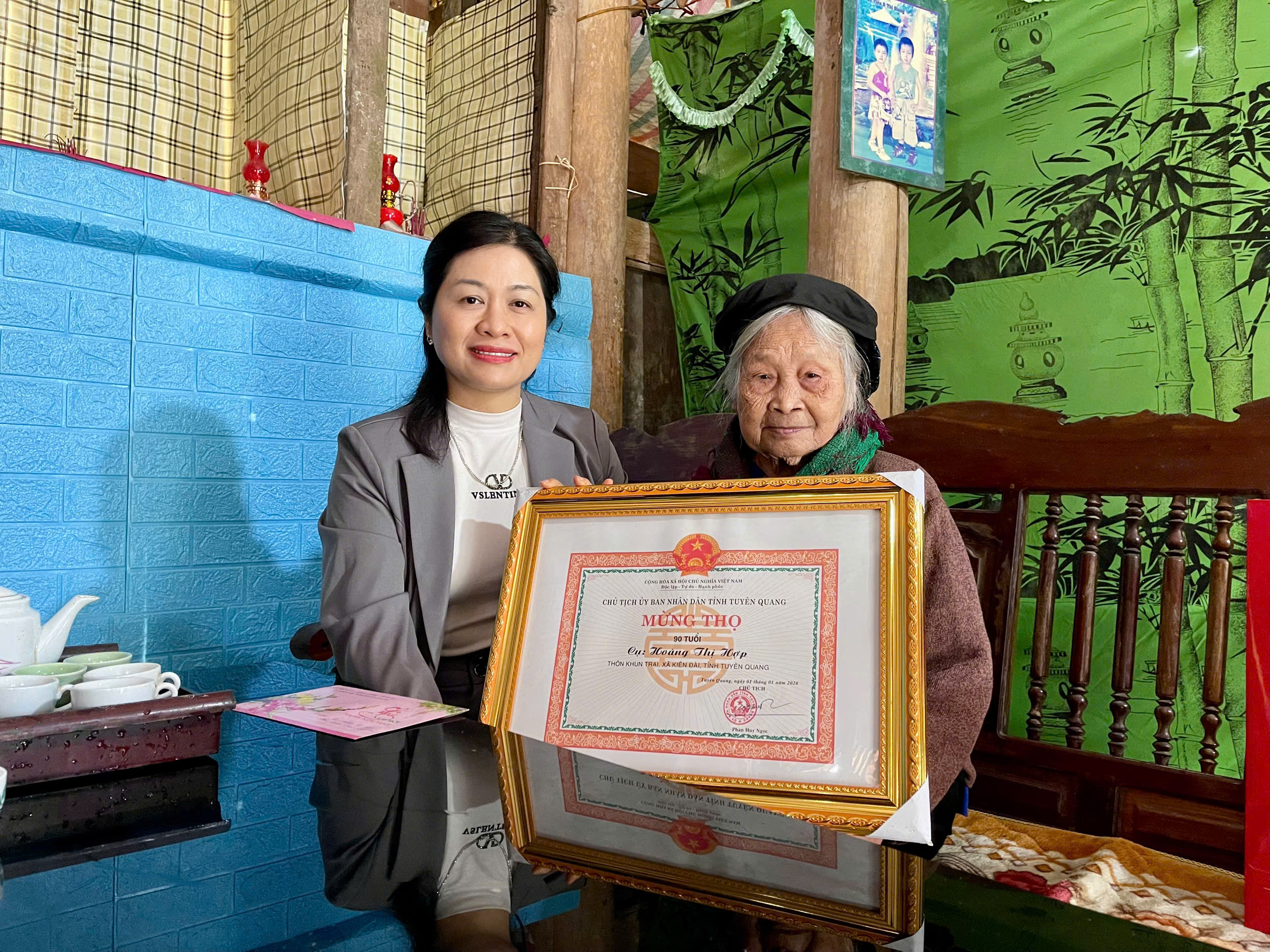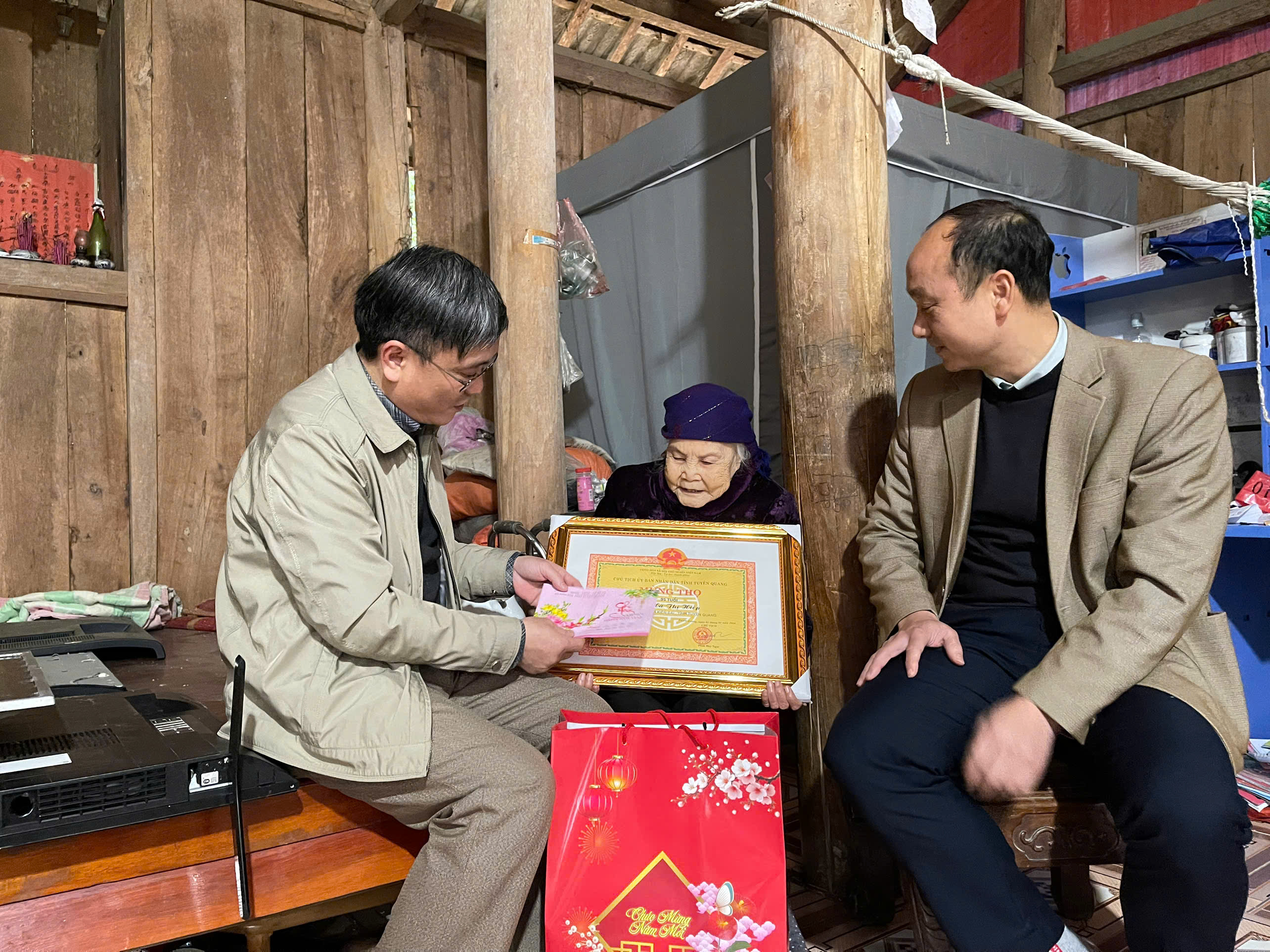 Lãnh đạo xã Kiên Đài thăm, tặng quà các cụ tròn 90, 95 tuổi