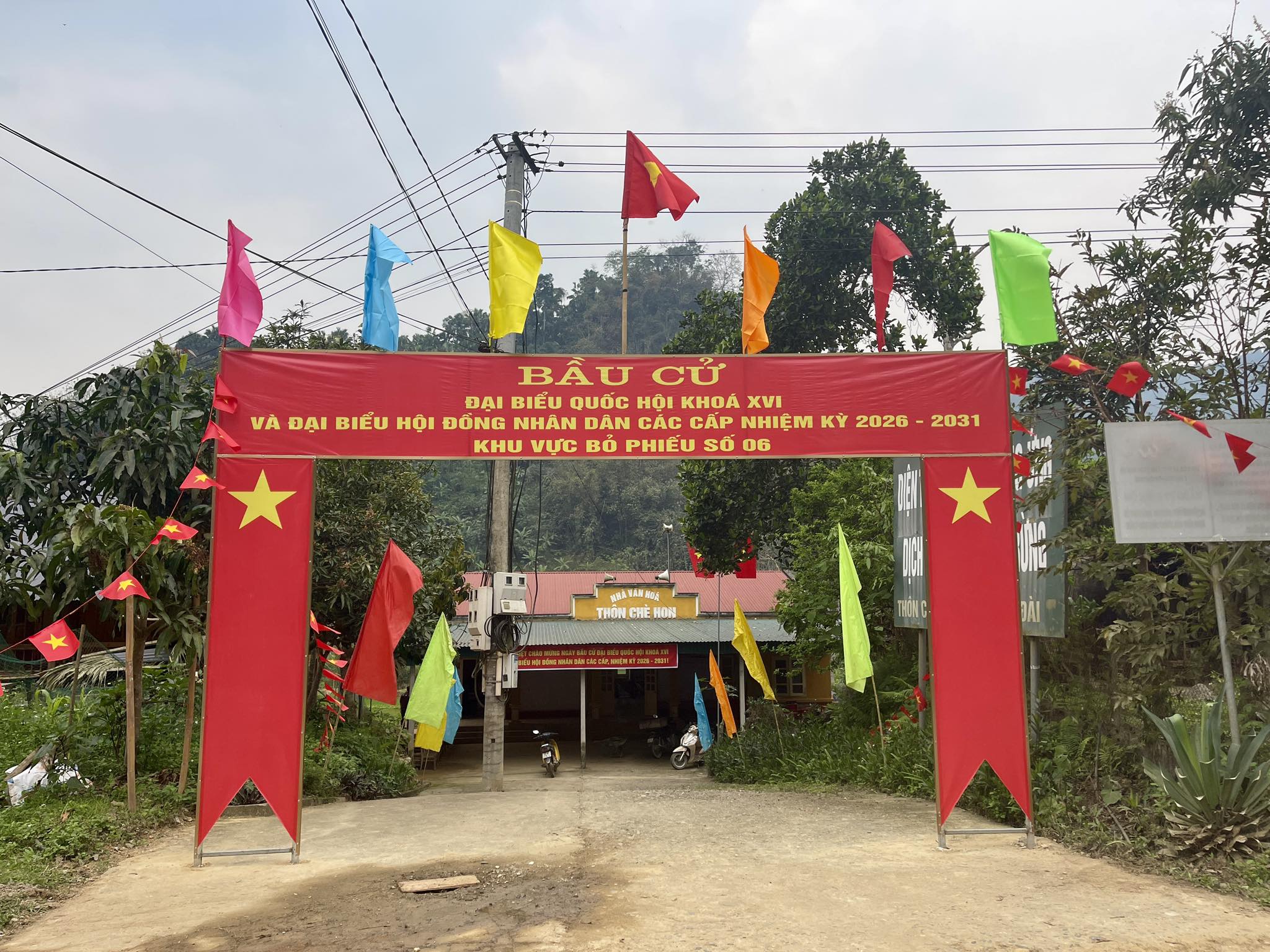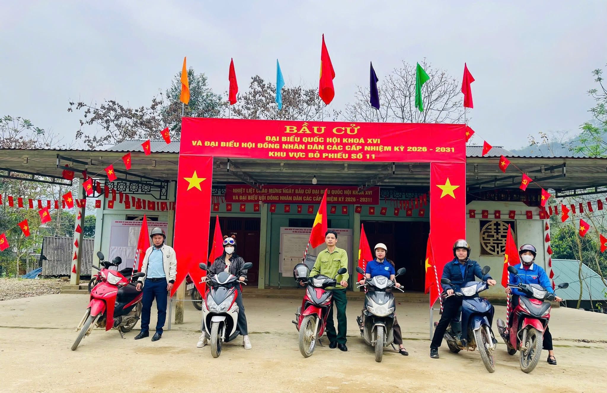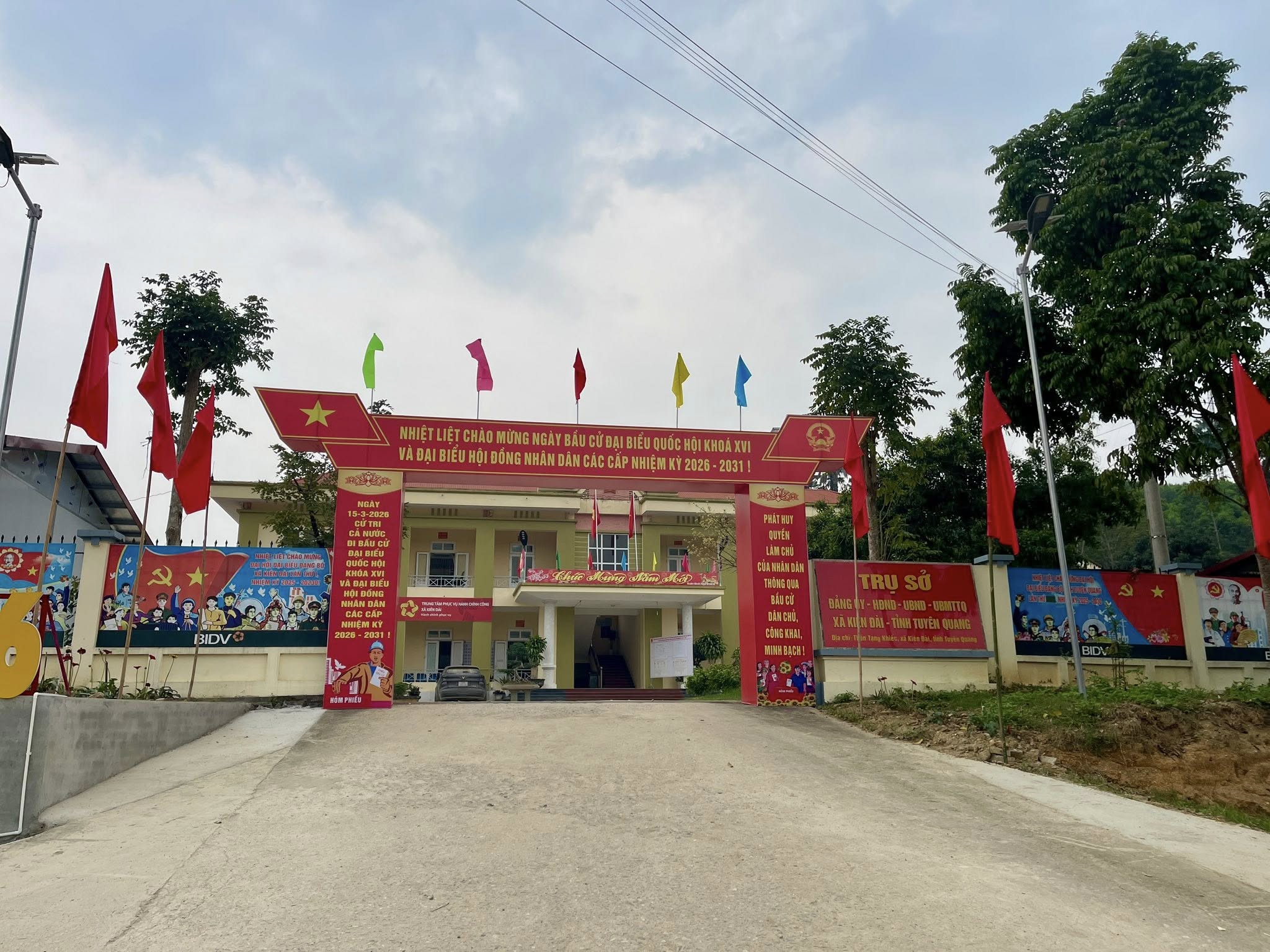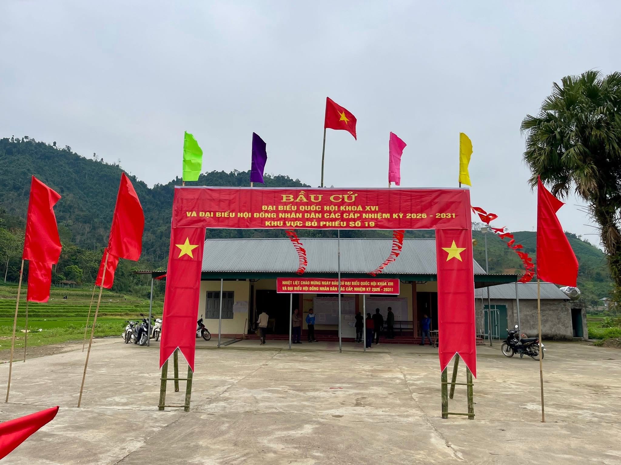 Các khu vực bỏ phiếu tại xã Kiên Đài được trang trí cờ, băng rôn rực rỡ, sẵn sàng cho Ngày bầu cử đại biểu Quốc hội khóa XVI và đại biểu Hội đồng nhân dân các cấp nhiệm kỳ 2026–2031 vào ngày 15/3, ngày hội lớn của toàn dân