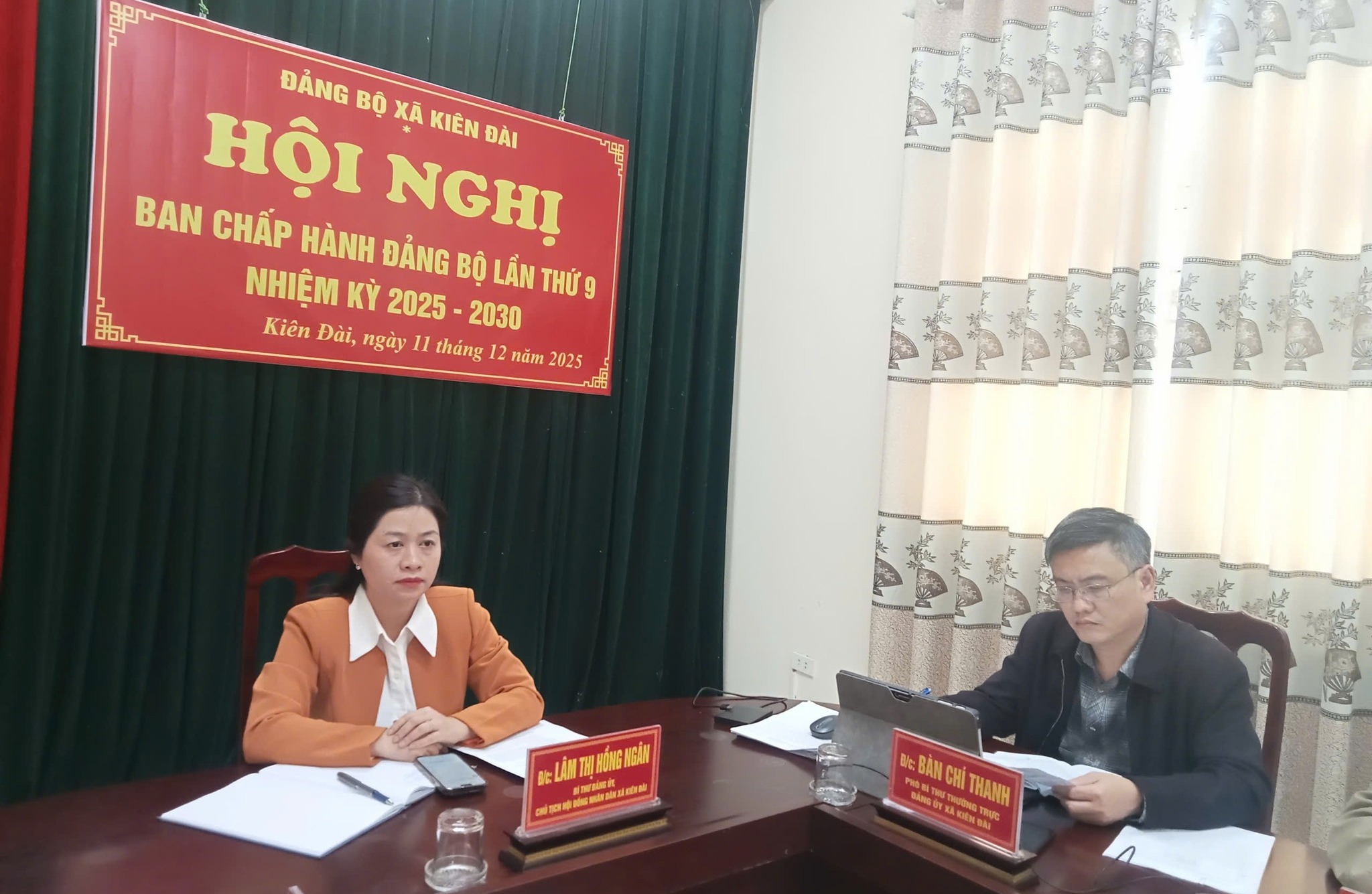 Tại Hội nghị Ban Chấp hành lần thứ 9, đồng chí Lâm Thị Hồng Ngân, Bí thư Đảng ủy, Chủ tịch HĐND xã quán triệt mục tiêu, yêu cầu hội nghị. Đồng chí Bàn Chí Thanh - Phó Bí thư Thường trực Đảng ủy báo cáo kết quả thẩm định, đánh giá tổ chức cơ sở Đảng năm 2025. Hội nghị thảo luận và tiến hành bỏ phiếu xếp loại chất lượng Đảng bộ năm 2025; Kết luận hội nghị, đồng chí Bí thư yêu cầu các chi bộ tiếp tục khắc phục hạn chế, nâng cao chất lượng công tác xây dựng Đảng.