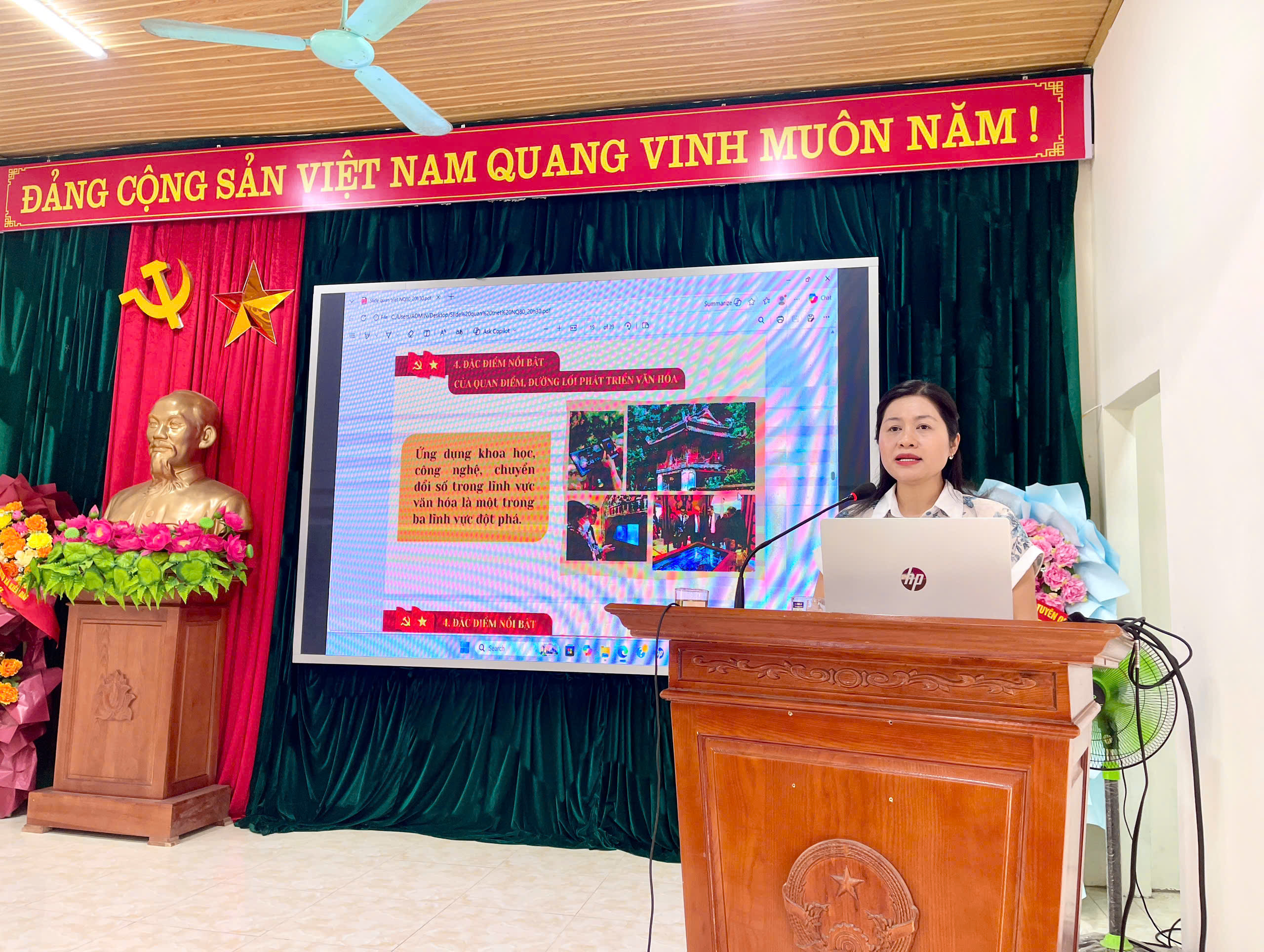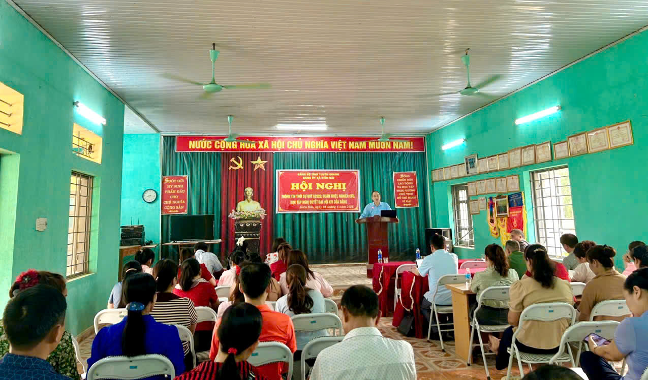 Tại Nhà văn hóa thôn Bản Vả, hội nghị có 7 chi bộ với 90 đại biểu tham dự; đồng chí Bùi Mạnh Hùng, Phó Bí thư Đảng ủy, Chủ tịch UBND xã làm báo cáo viên. Trong khi đó, tại Nhà văn hóa thôn Bó Héo, 6 chi bộ với 84 đại biểu tham gia hội nghị, do đồng chí Hoàng Thị Thanh, Trưởng Ban Xây dựng Đảng xã trực tiếp truyền đạt.