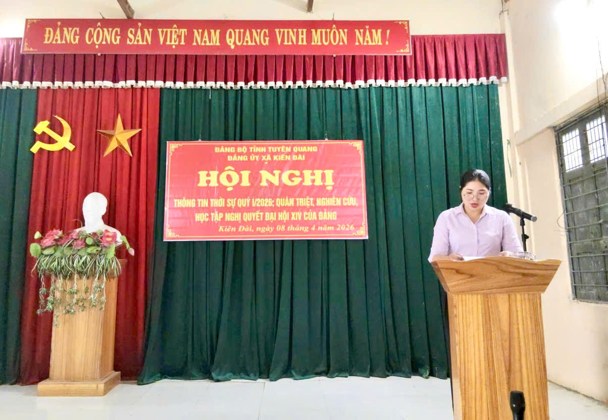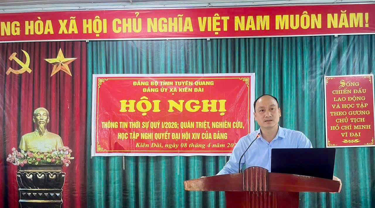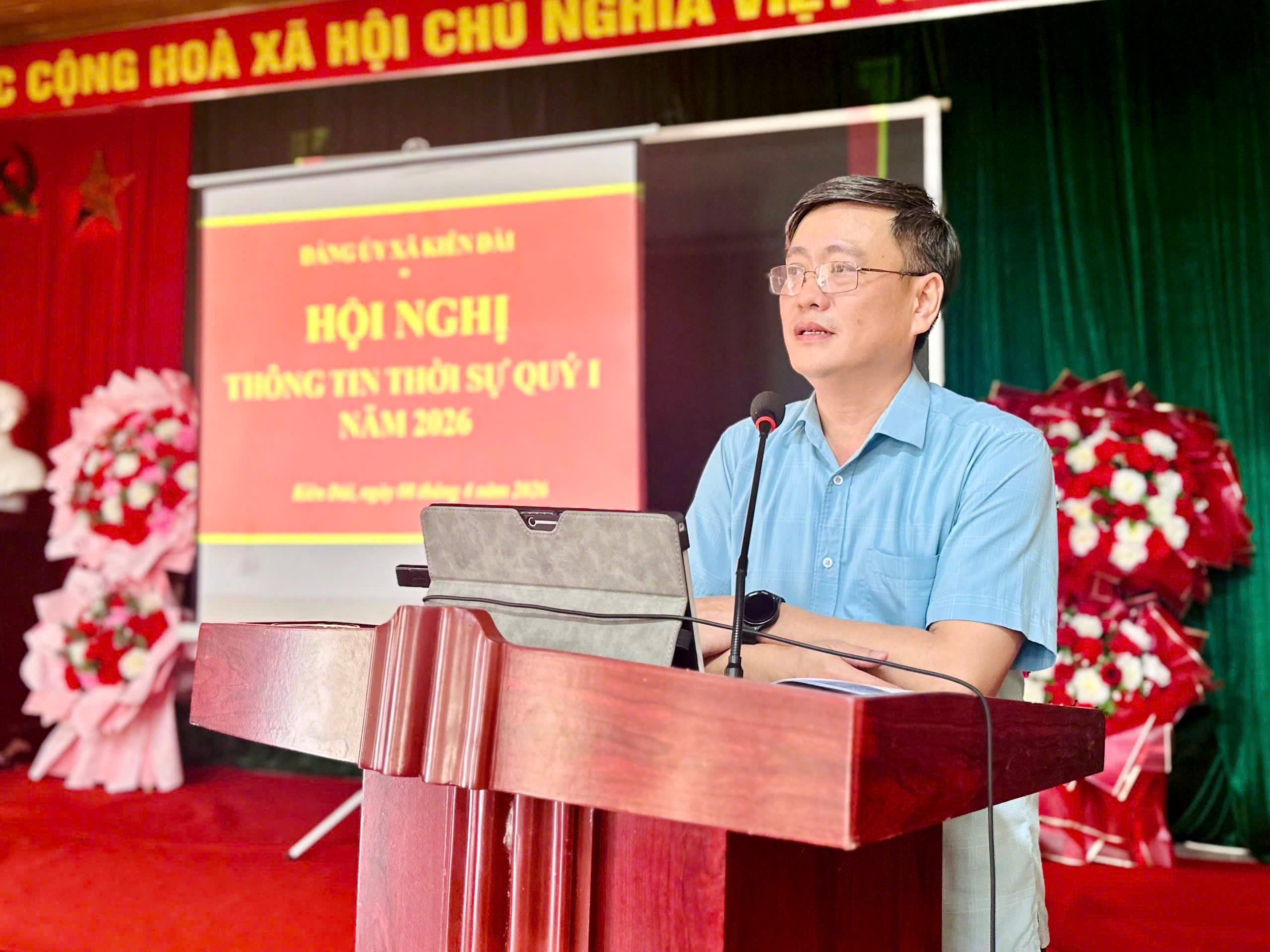 Ngày 08/4/2026, Đảng ủy xã Kiên Đài đã tổ chức Hội nghị thông tin thời sự Quý I/2026, kết hợp quán triệt các chỉ thị, nghị quyết quan trọng của Trung ương tới toàn thể cán bộ, đảng viên trên địa bàn. Đây là đợt sinh hoạt chính trị có ý nghĩa thiết thực, góp phần nâng cao nhận thức, củng cố sự thống nhất trong toàn Đảng bộ.