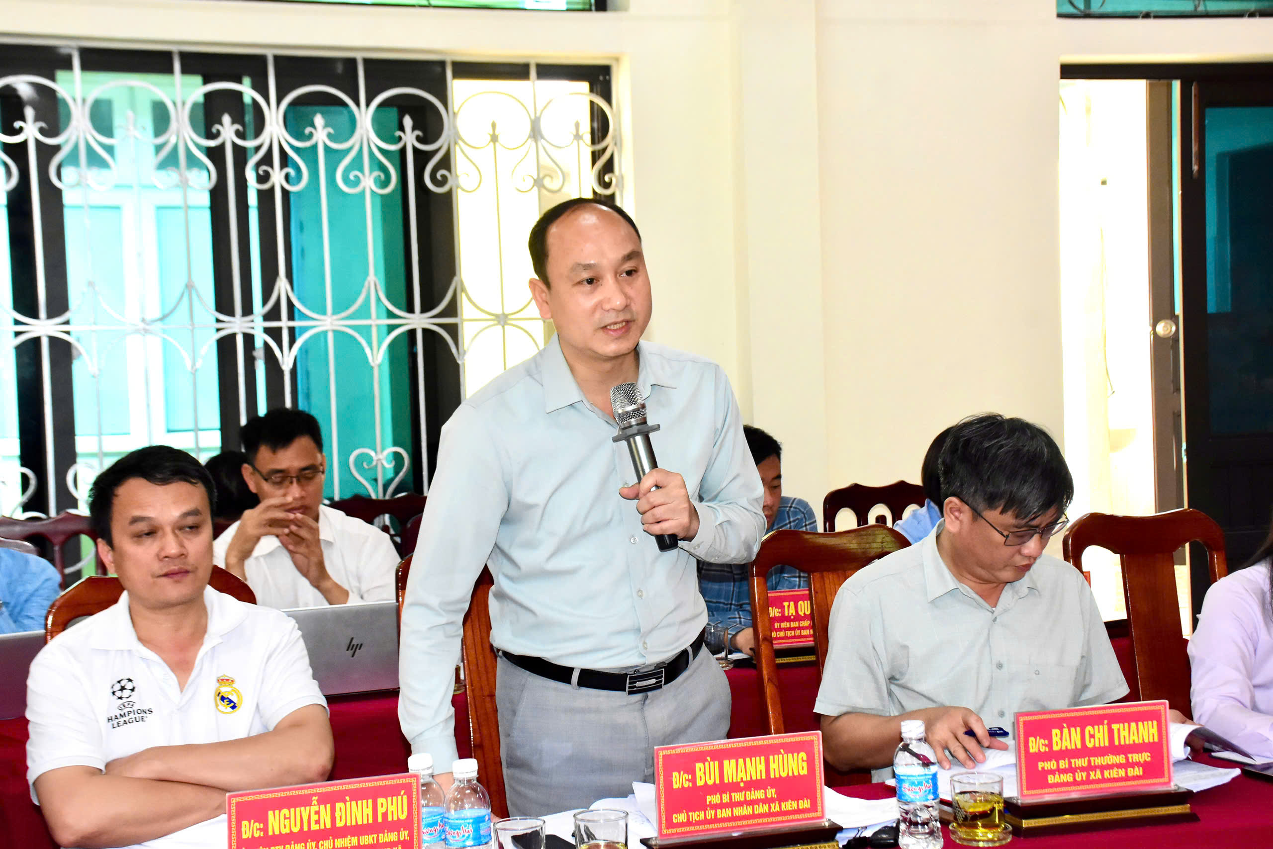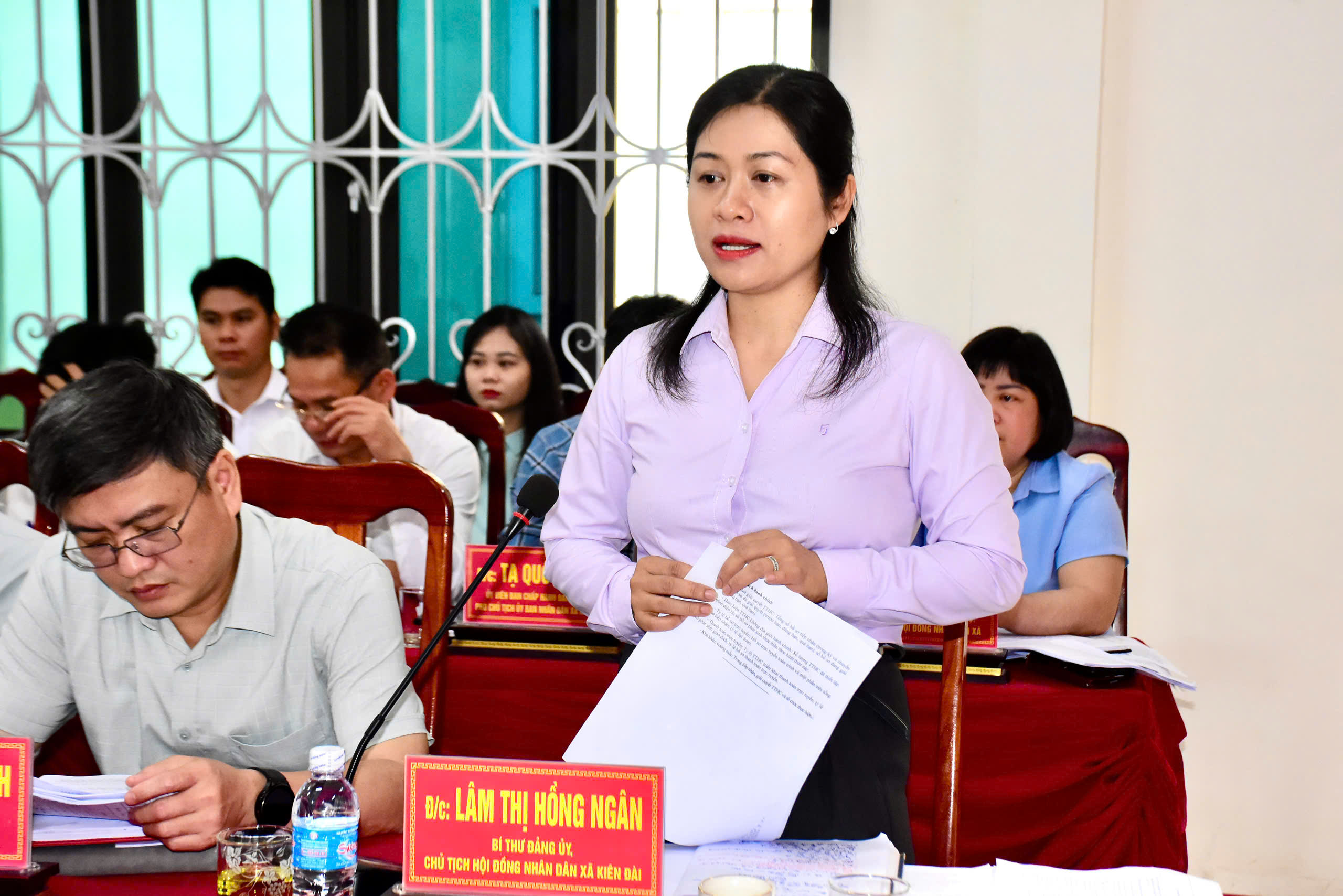 Làm việc với Đoàn Kiểm tra, giám sát, xã Kiên Đài có các đồng chí: Lâm Thị Hồng Ngân, Bí thư Đảng ủy, Chủ tịch HĐND xã; Bàn Chí Thanh, Phó Bí thư Thường trực Đảng ủy; Bùi Mạnh Hùng, Phó Bí thư Đảng ủy, Chủ tịch UBND xã cùng các đồng chí Ủy viên Ban Thường vụ Đảng ủy xã; Ban Chấp hành Đảng bộ xã