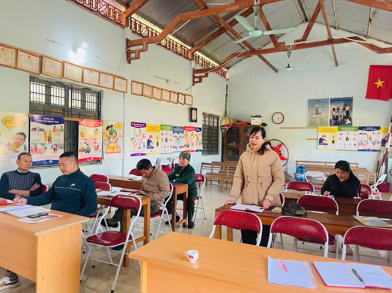 Đồng chí Lâm Thị Hồng Ngân, Bí thư Đảng ủy, Chủ tịch Hội đồng nhân dân xã dự tổng kết Chi bộ thôn Tạng Khiếc.