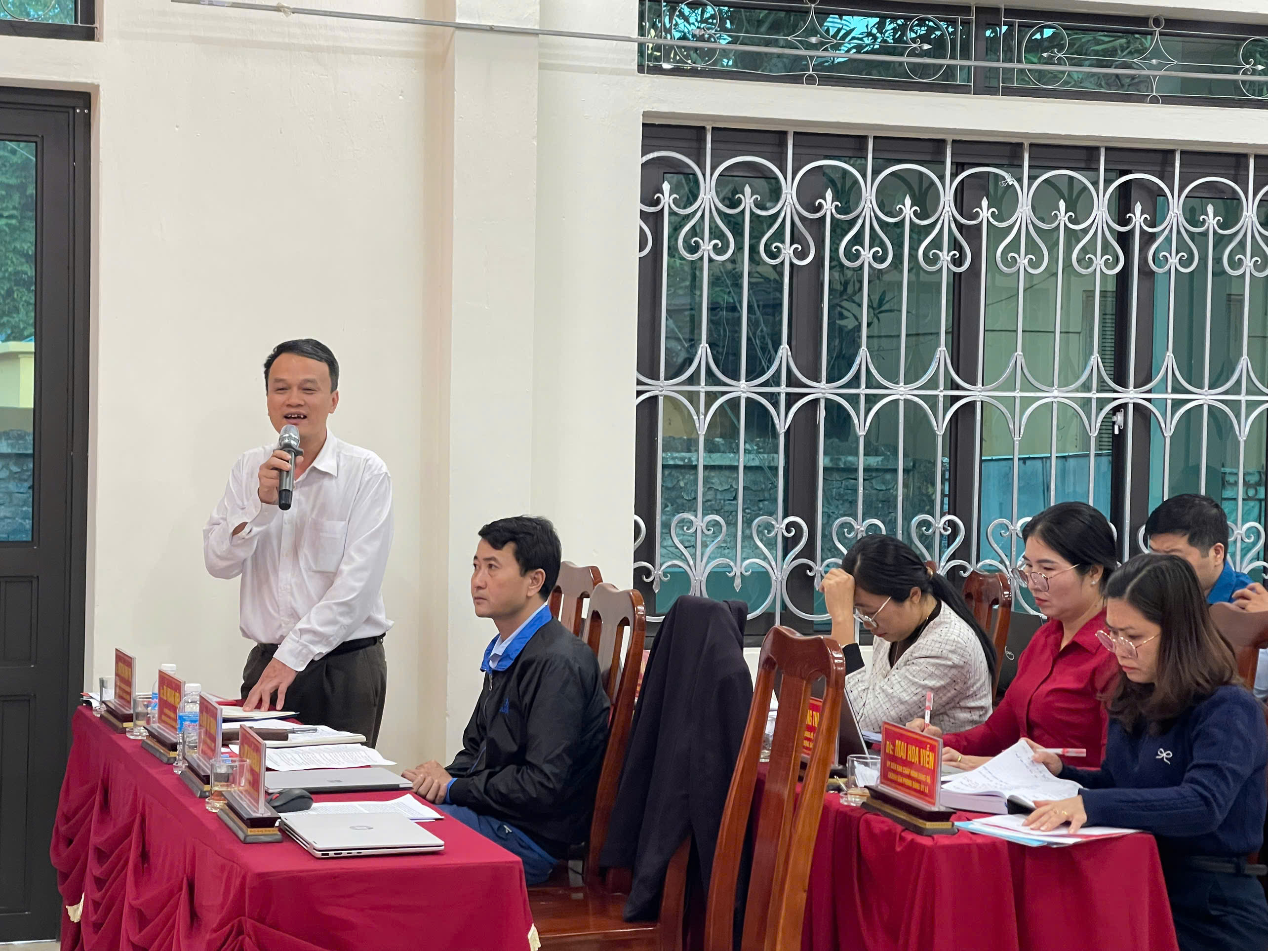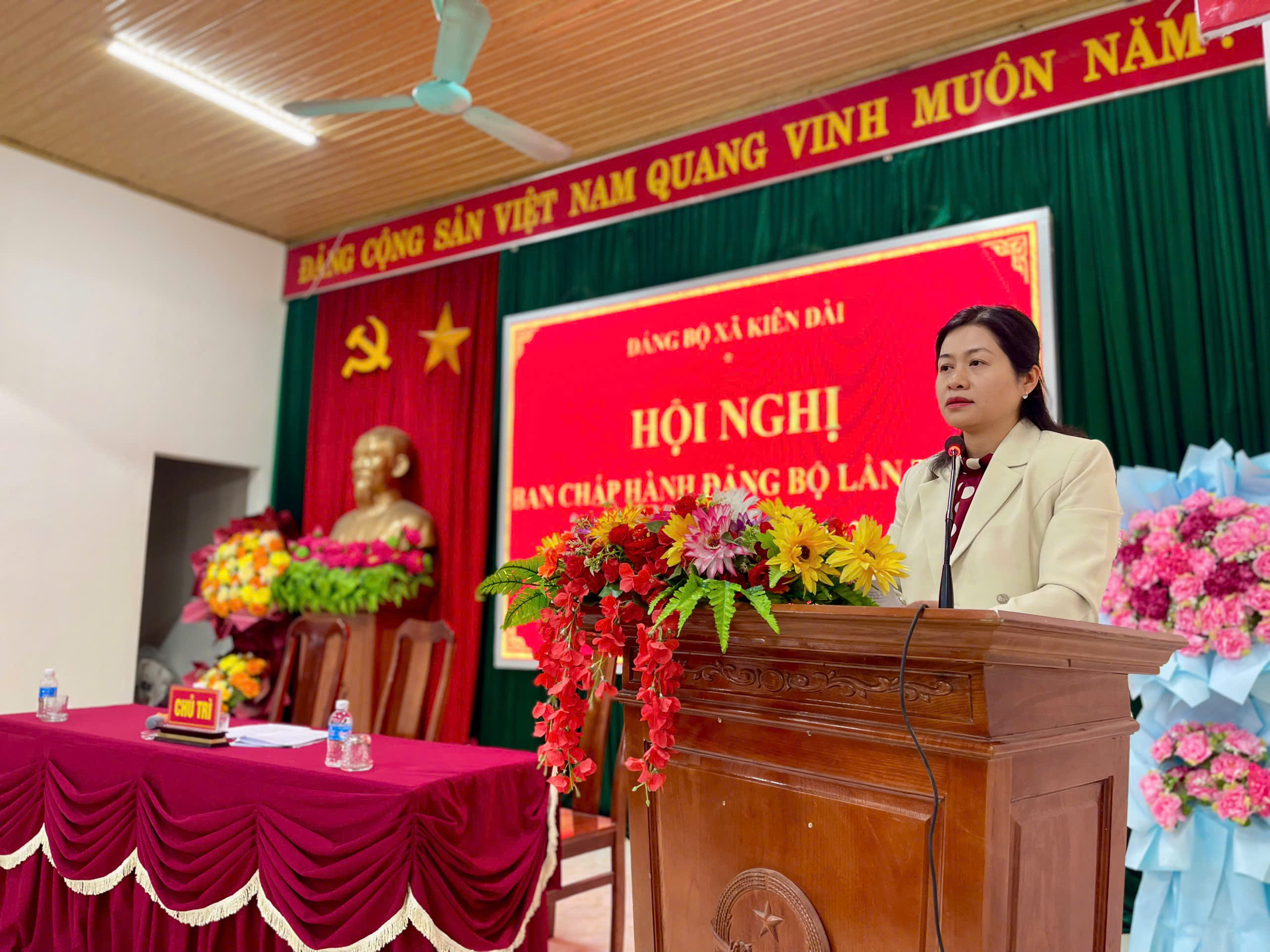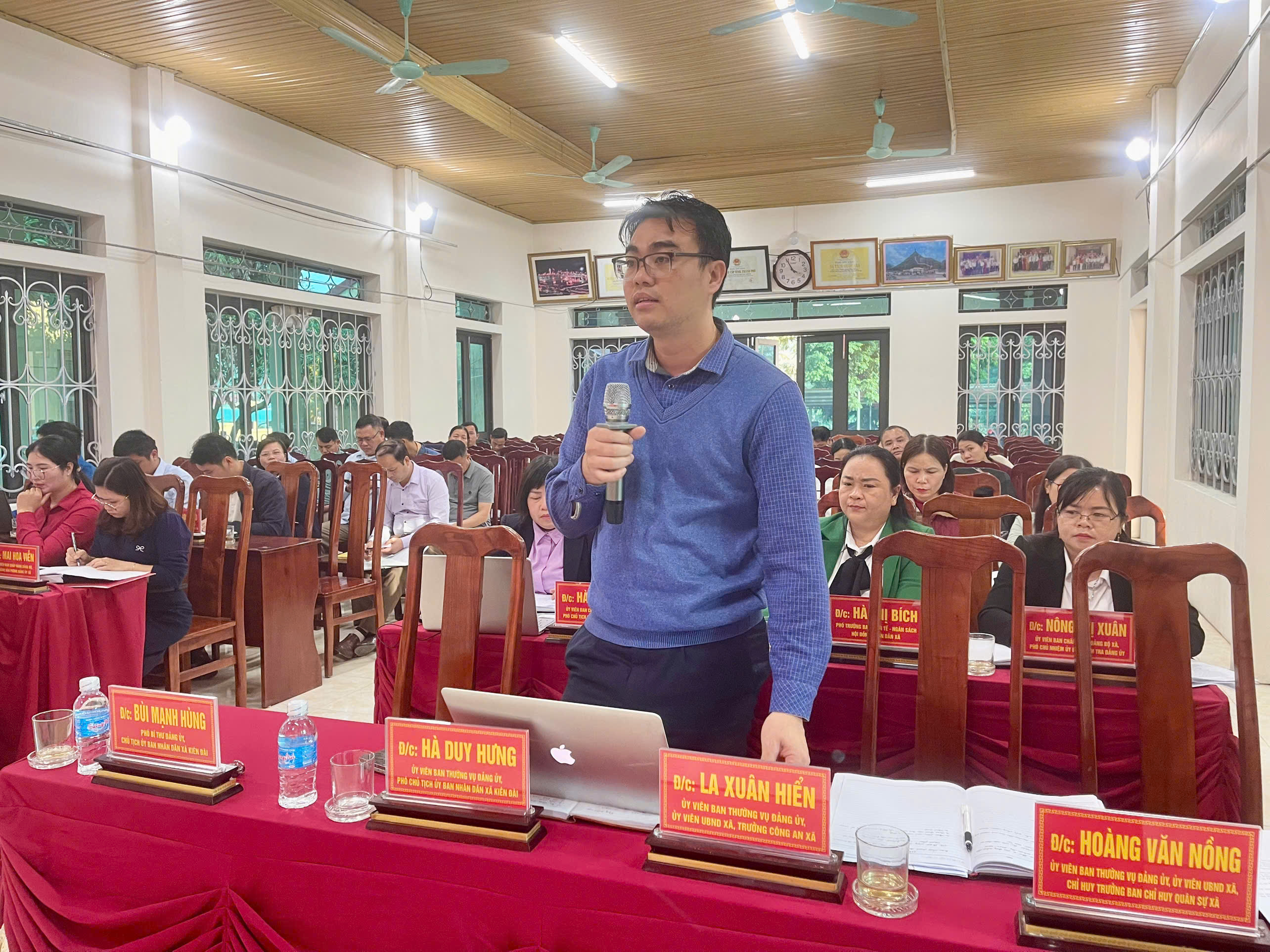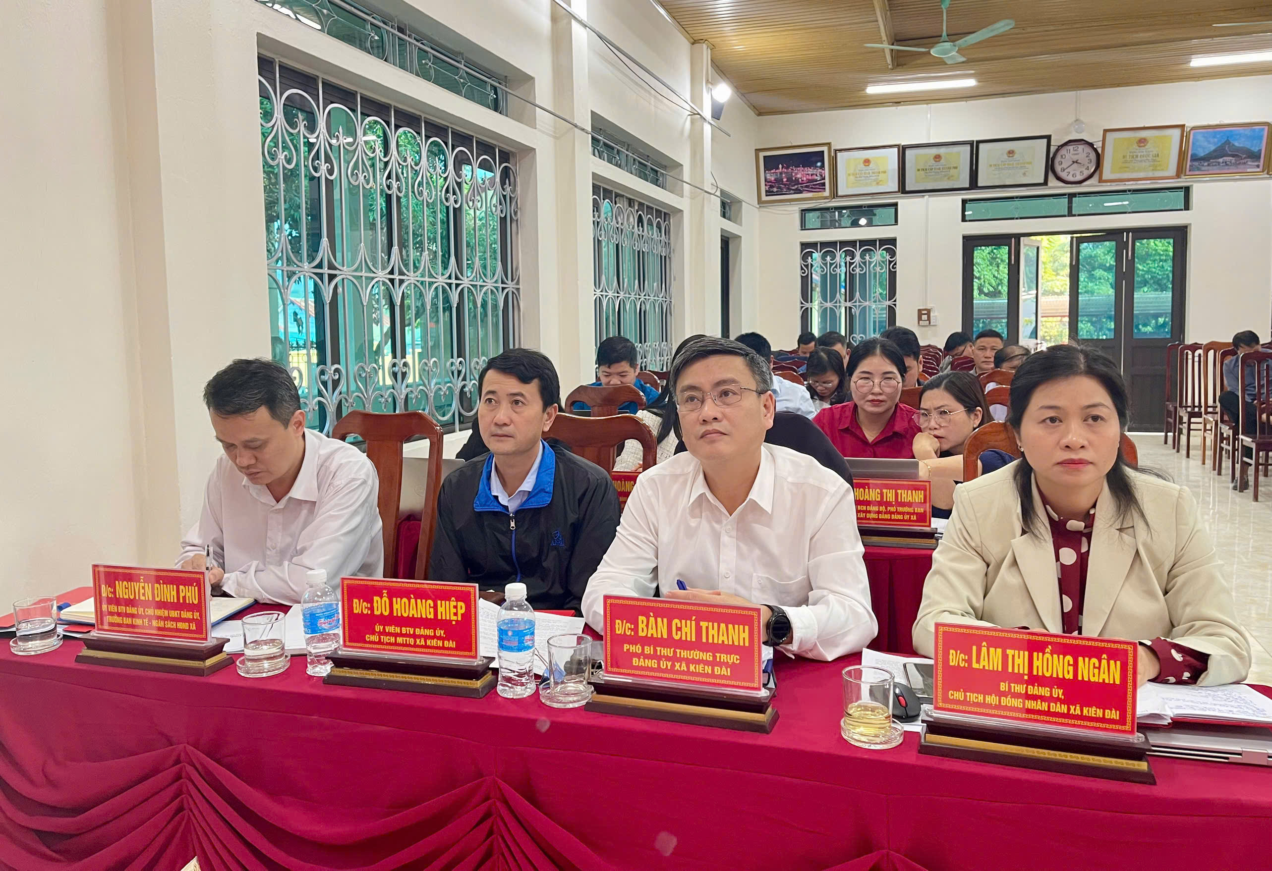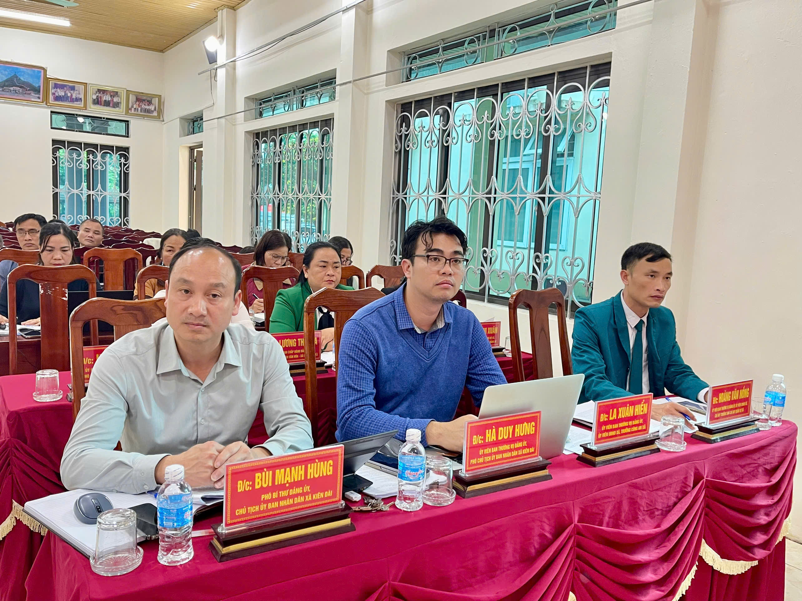 Chủ trì hội nghị có các đồng chí: Lâm Thị Hồng Ngân, Bí thư Đảng ủy, Chủ tịch HĐND xã; Bàn Chí Thanh, Phó Bí thư Thường trực Đảng ủy; Bùi Mạnh Hùng, Phó Bí thư Đảng ủy, Chủ tịch UBND xã.