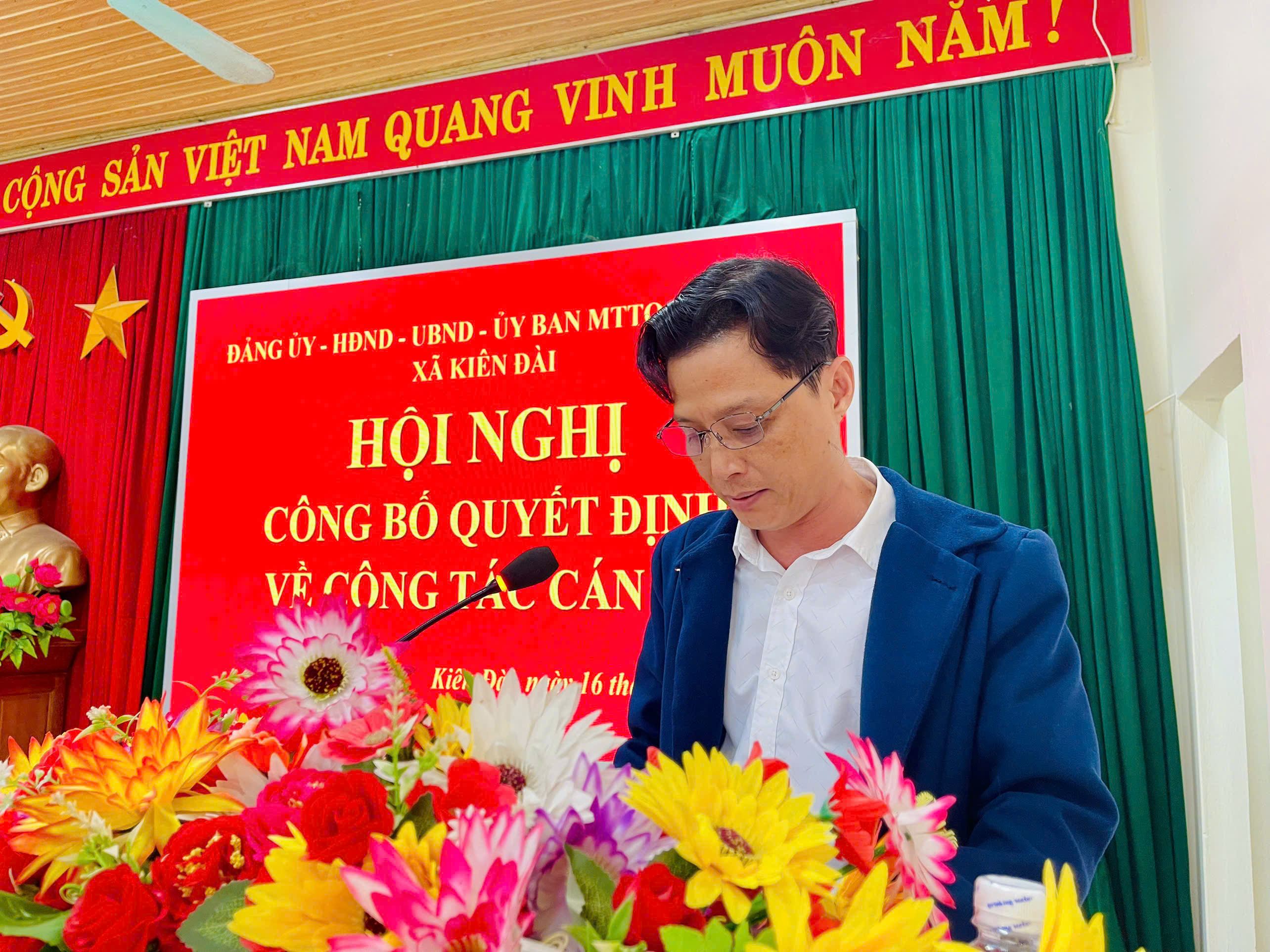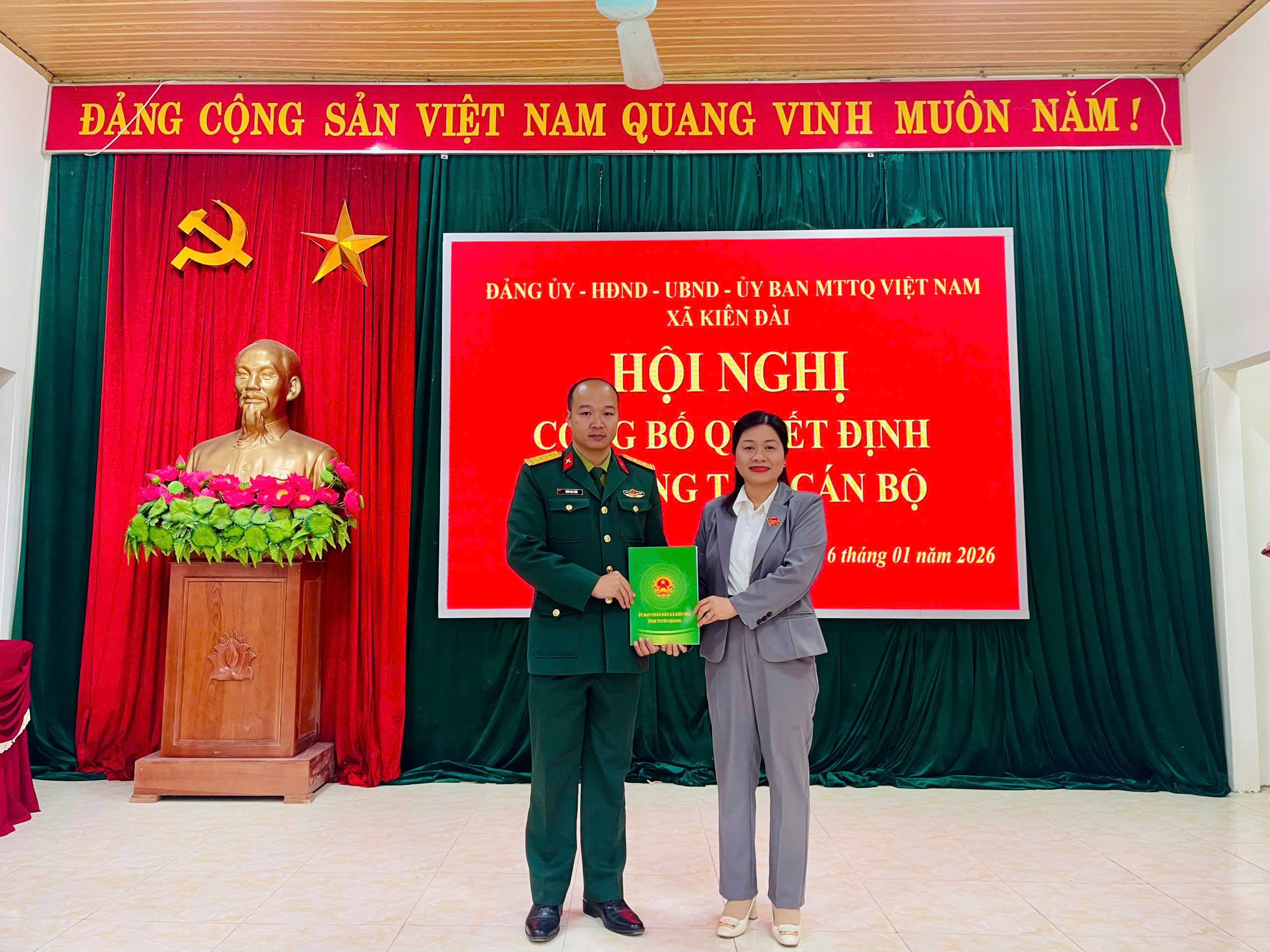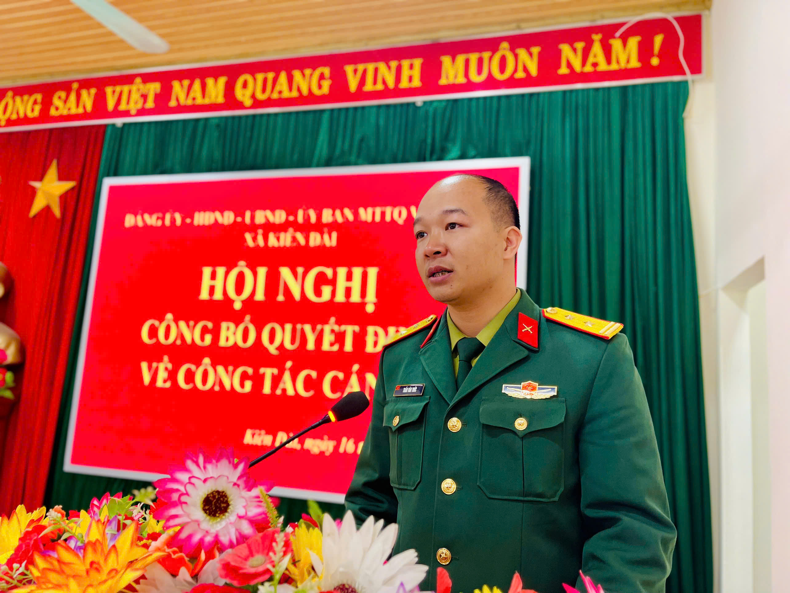 Theo đó, Hội nghị đã công bố các quyết định: Quyết định của Quân khu 2 về việc điều động bổ nhiệm cán bộ đối với đồng chí Trung tá Trần Văn Thức, nguyên Tiểu đoàn trưởng KTT kiêm Trợ lý Phòng Tham mưu Ban Chỉ huy phòng thủ khu vực 5 - Yên Sơn, Bộ CHQS tỉnh Tuyên Quang giữ chức vụ Chỉ huy trưởng ban CHQS xã Kiên Đài. Quyết định của của UBND tỉnh Tuyên Quang về việc miễn nhiệm Chỉ huy trưởng và bổ nhiệm giữ chức vụ Phó Chỉ huy trưởng Ban Chỉ huy quân sự xã đối với đồng chí Hoàng Văn Nồng, Ủy viên BTV Đảng ủy, nguyên Chỉ huy trưởng Ban CHQS xã Kiên Đài.