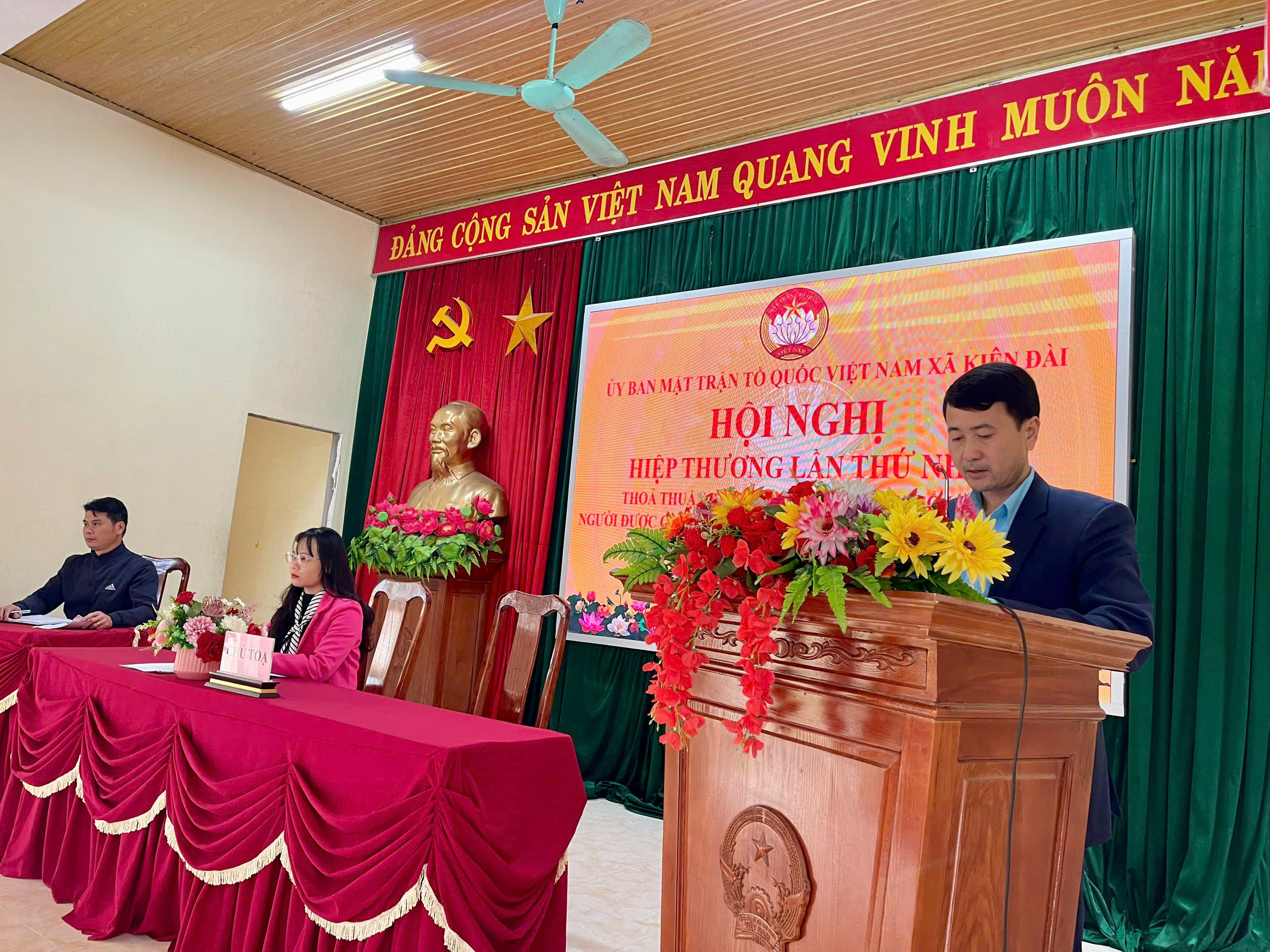 Ông Đỗ Hoàng Hiệp, Uỷ viên Ban Thường vụ Đảng ủy, Chủ tịch UBMTTQ Việt Nam xã Kiên Đài phát biểu khai mạc và chủ tọa Hội nghị.