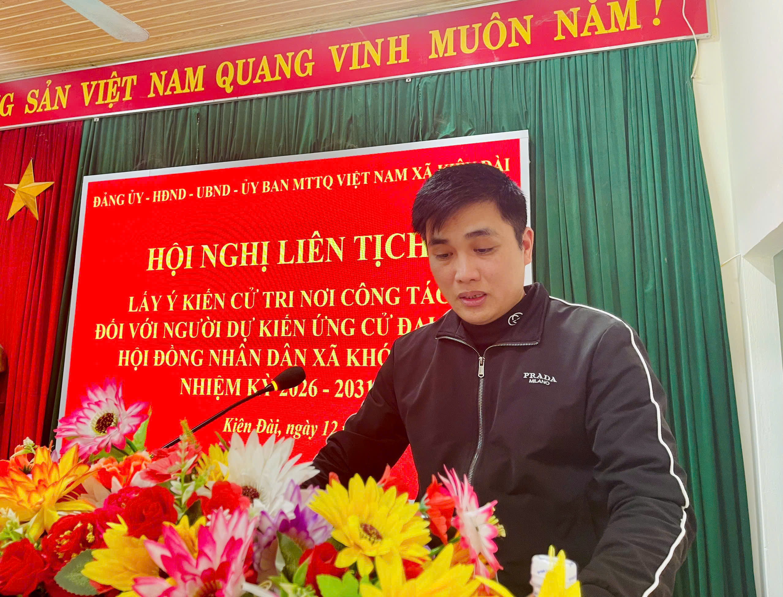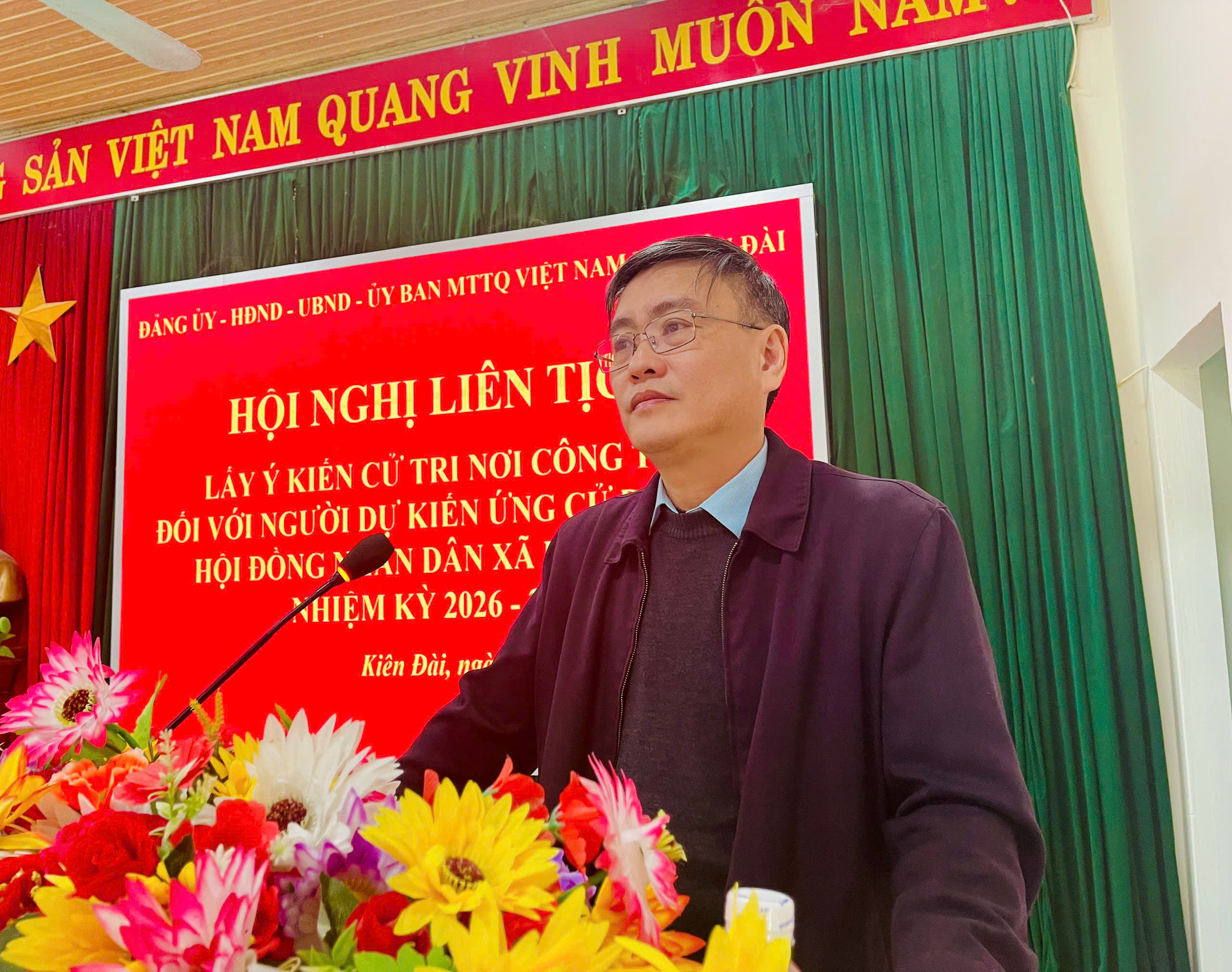 Đồng chí Hoàng Đức Lăng, Ủy viên BCH Đảng bộ xã, Phó Chủ tịch UBMTTQ, Chủ tịch Hội CCB xã Kiên Đài đã thông qua tóm tắt của người ứng cử.