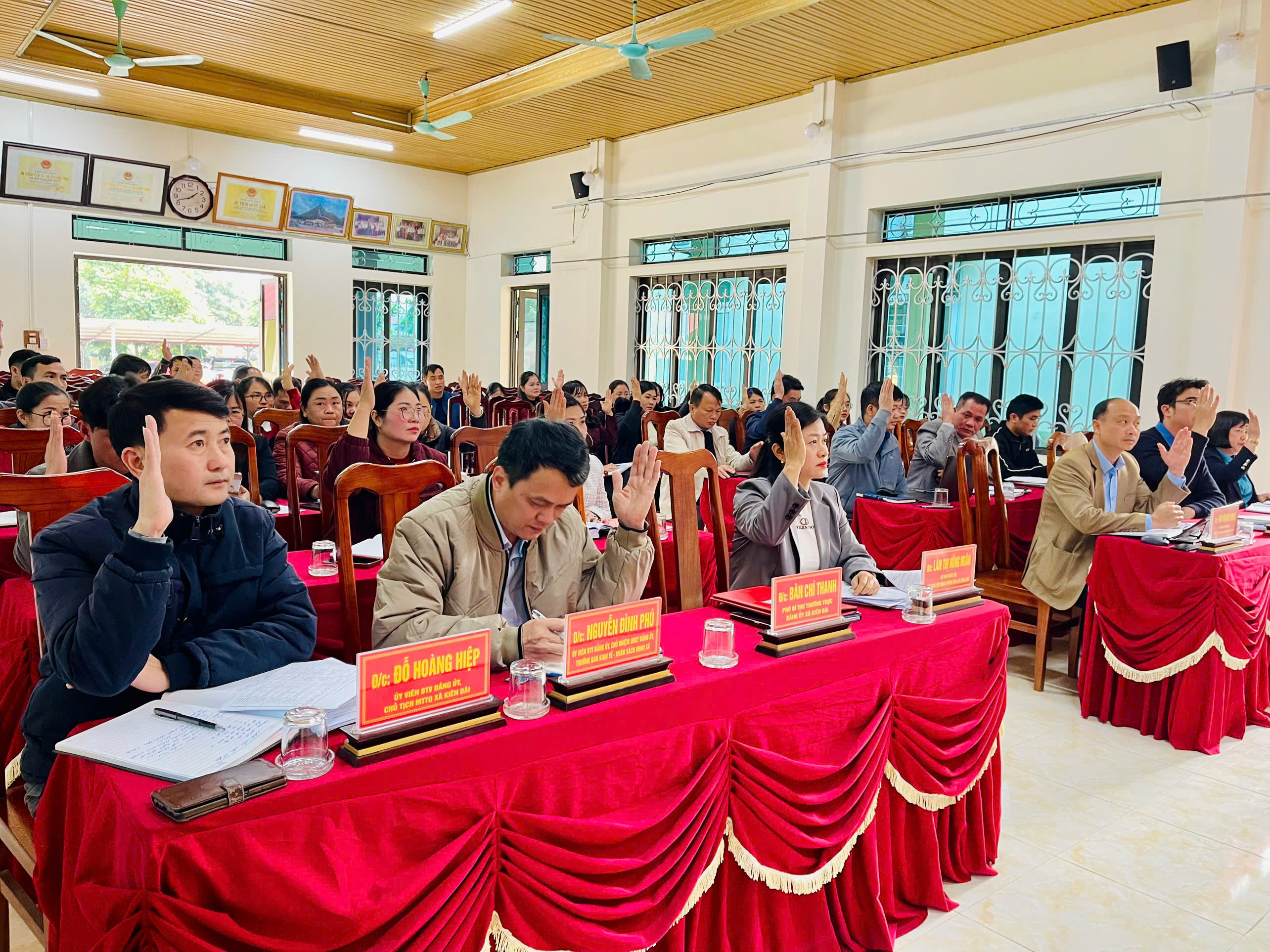 Trên cơ sở thảo luận dân chủ, khách quan, hội nghị đã tiến hành biểu quyết bằng hình thức giơ tay và thống nhất thông qua kết quả theo đúng quy định. Kết quả, 100% đại biểu dự hội nghị đã đồng ý tán thành, giới thiệu 26 đồng chí đang công tác tại các cơ quan thuộc Đảng ủy, HĐND, các ban của HĐND, UBND, cơ quan chuyên môn thuộc UBND, cơ quan Ủy ban MTTQ Việt Nam xã để hiệp thương, giới thiệu ứng cử đại biểu HĐND xã Kiên Đài khóa XXI, nhiệm kỳ 2026 - 2031.