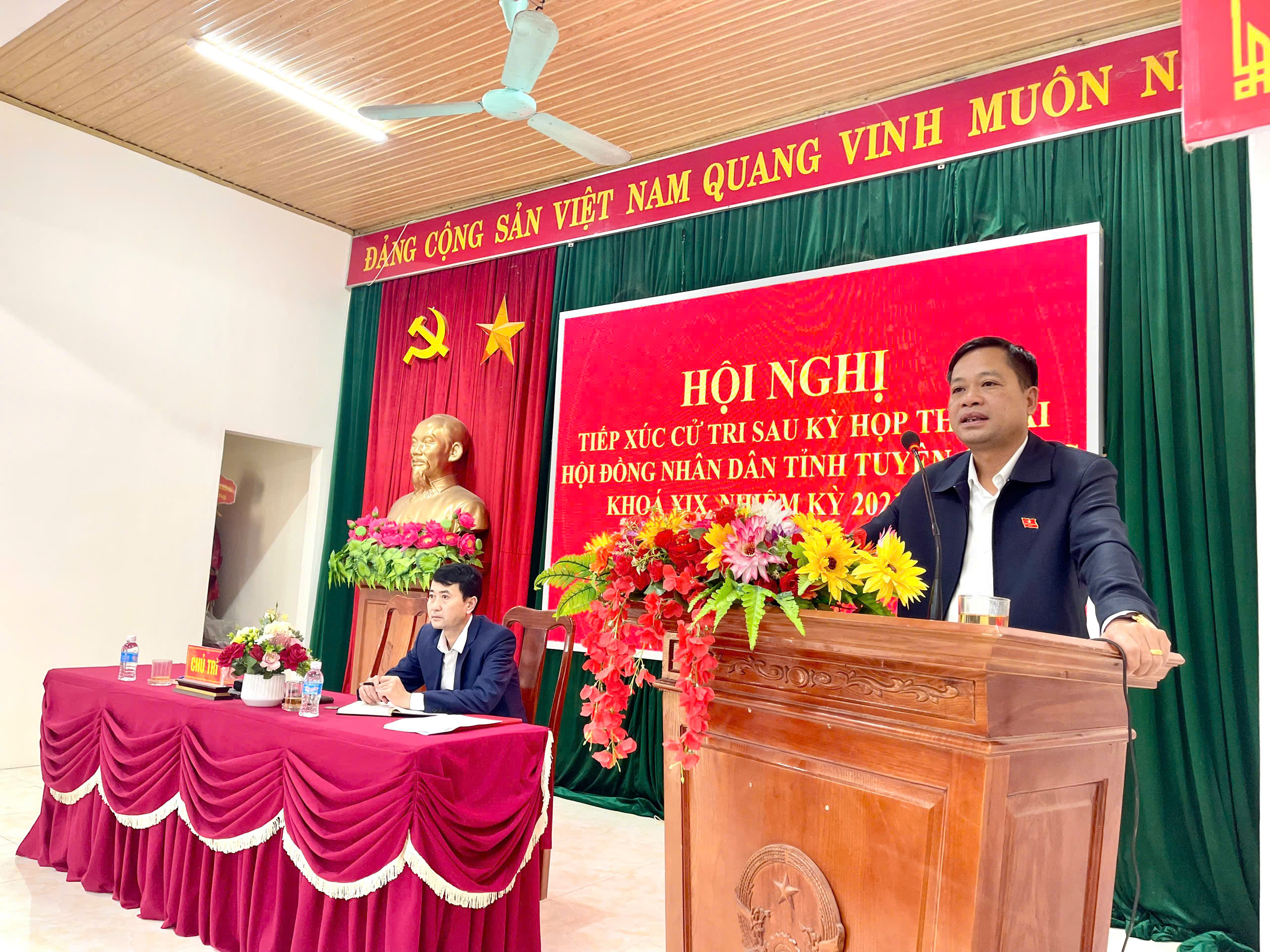 Tại hội nghị, ông Trần Văn Tú, Đại biểu HĐND tỉnh đã thông báo tới cử tri kết quả Kỳ họp thứ hai HĐND tỉnh Tuyên Quang khóa XIX, trong đó làm rõ những nội dung trọng tâm về tình hình phát triển kinh tế – xã hội, quốc phòng – an ninh, các nghị quyết quan trọng đã được HĐND tỉnh thông qua và những vấn đề được cử tri quan tâm.