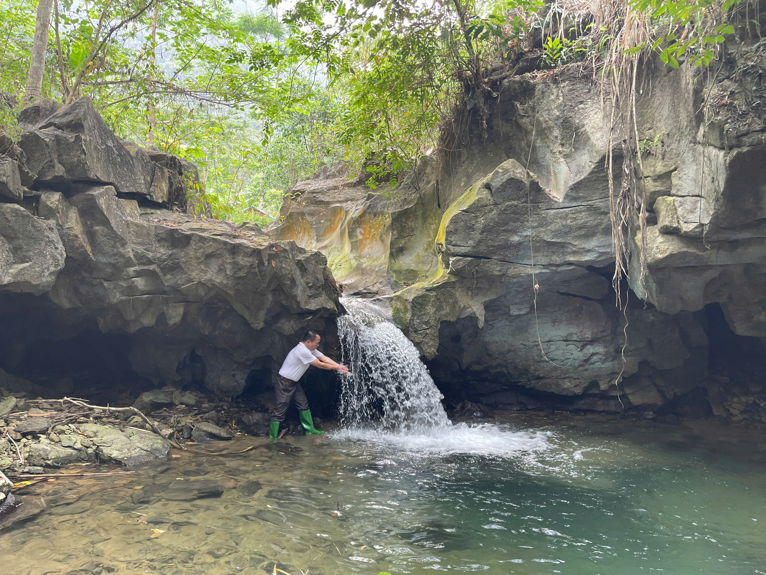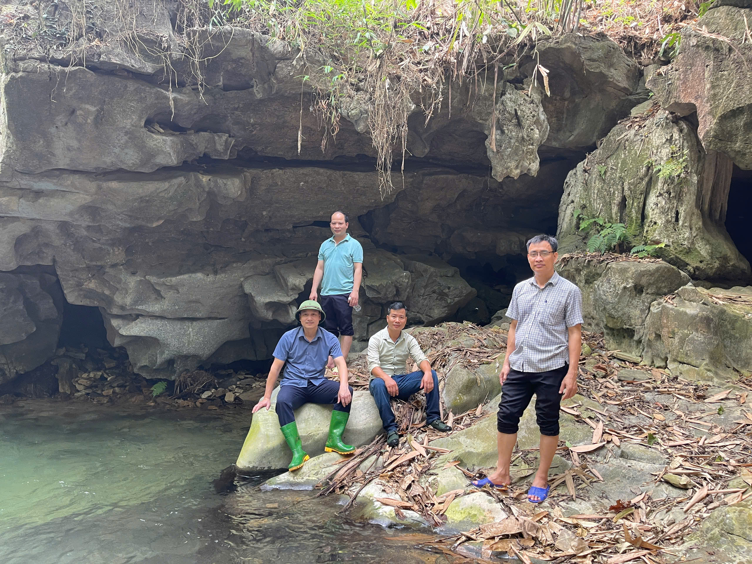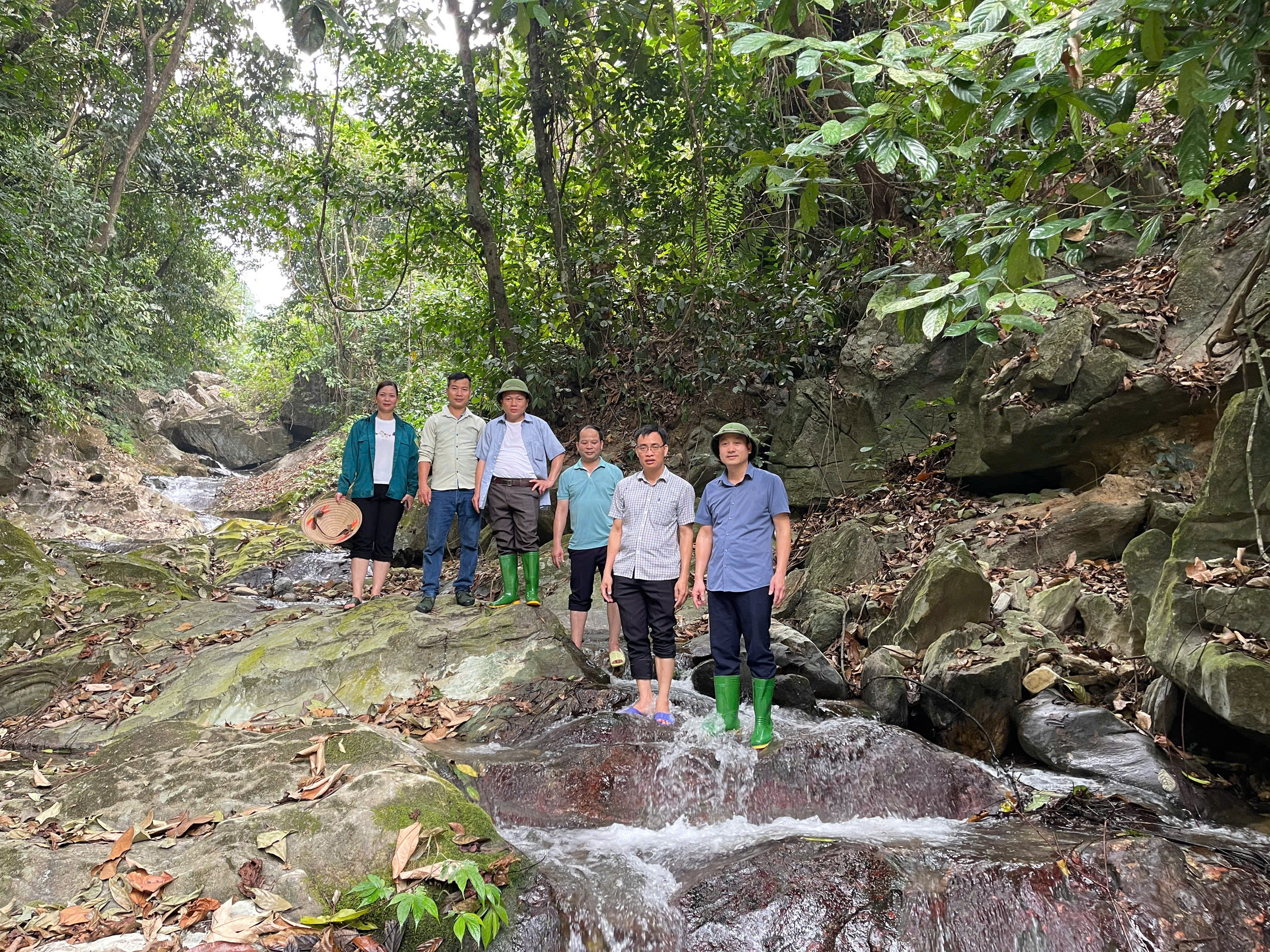 Đoàn công tác của xã Kiên Đài khảo sát thực tế điểm du lịch sinh thái thác Thẳm Nu tại thôn Nà Bó do đồng chí Bùi Mạnh Hùng, Phó Bí thư Đảng ủy, Chủ tịch UBND xã làm trưởng đoàn