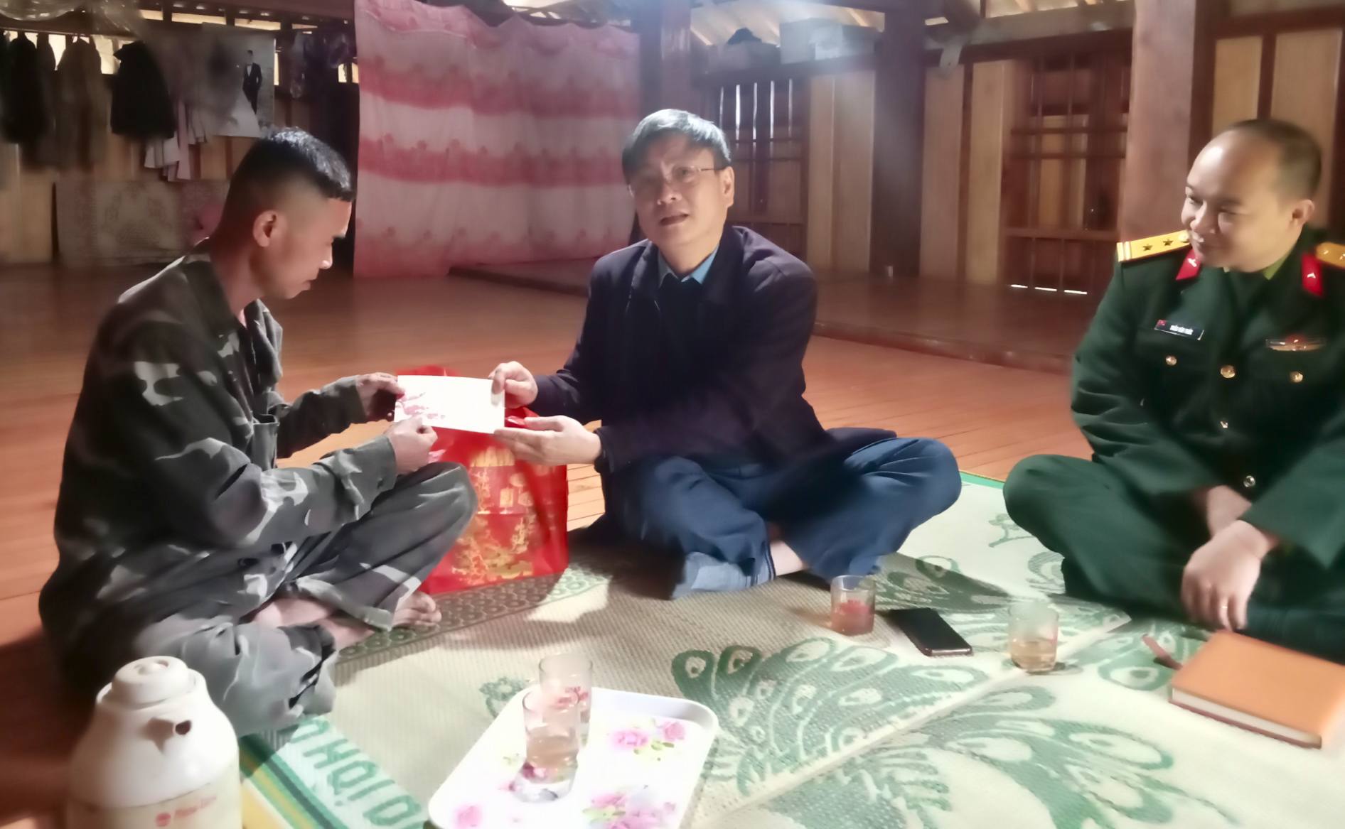 Lãnh đạo xã tặng quà các gia đình có công dân đang thực hiện nghĩa vụ quân sự tại các đơn vị trong và ngoài tỉnh