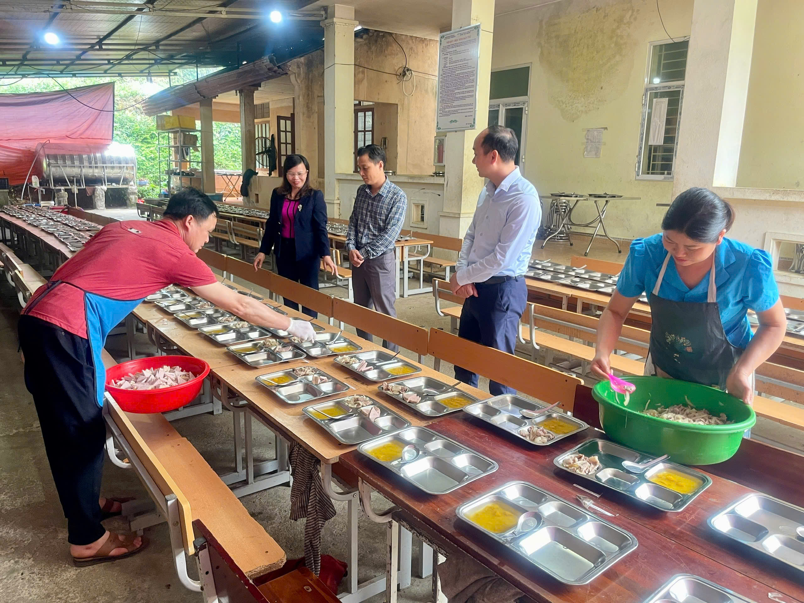 Tại các điểm trường, đồng chí Chủ tịch UBND xã đã trực tiếp kiểm tra quy trình chế biến, bảo quản thực phẩm, nguồn gốc nguyên liệu cũng như điều kiện vệ sinh an toàn thực phẩm tại khu vực bếp ăn. Đồng thời, đoàn cũng theo dõi thực tế bữa ăn của học sinh, từ khâu chia suất đến chất lượng khẩu phần ăn.