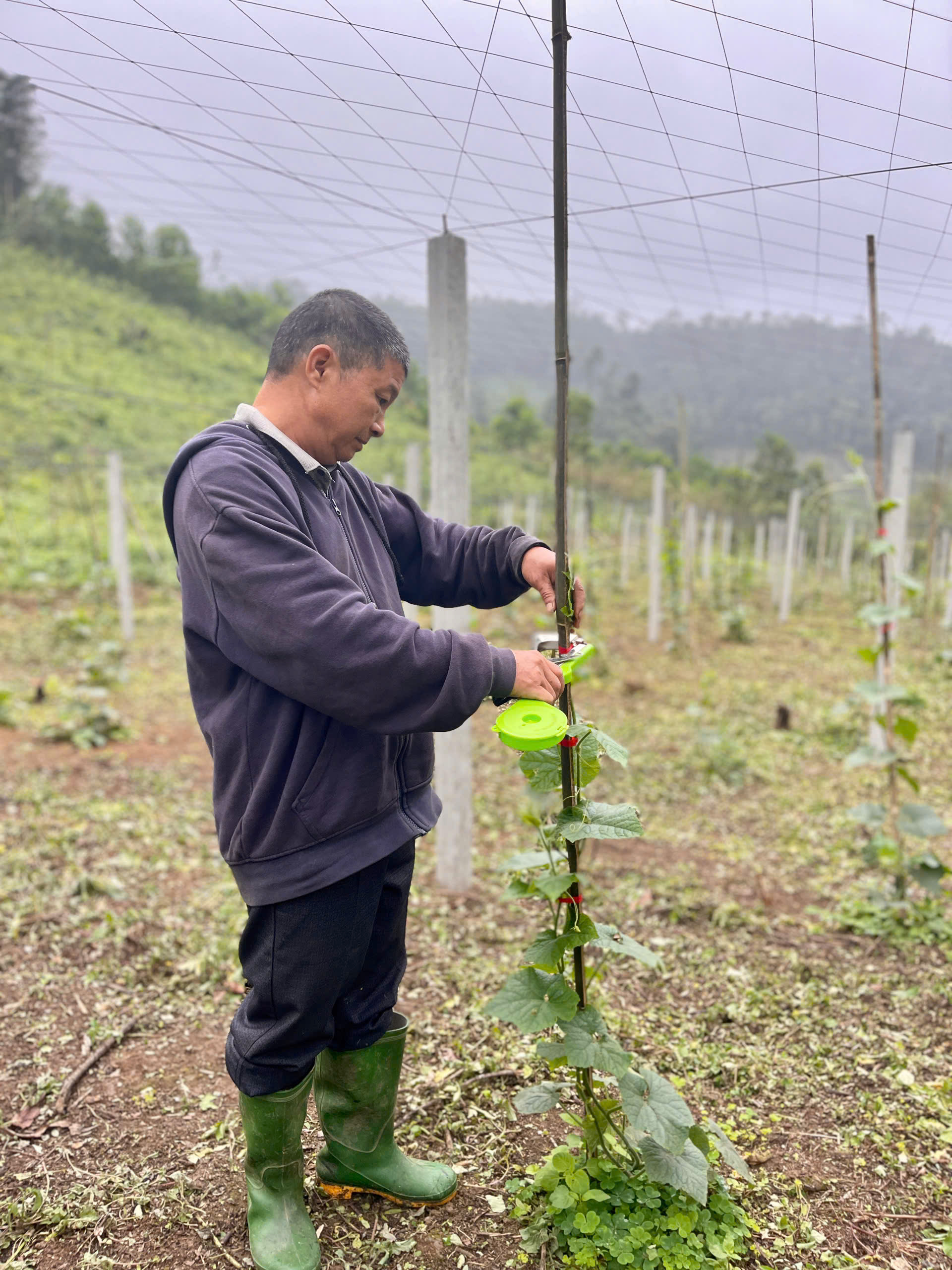 Mô hình được triển khai tại gia đình ông Phạm Văn Dũng và bà Hoàng Thị Lường, thôn Khun Vìn. Theo chia sẻ, năm 2025 gia đình ông đã trồng thử nghiệm 100 gốc bí thơm Bắc Kạn, bước đầu cho thấy hiệu quả kinh tế cao, sản phẩm được thị trường ưa chuộng, nhu cầu tiêu thụ lớn. Nhận thấy tiềm năng, năm 2026 gia đình đã mạnh dạn mở rộng quy mô, trồng thêm 4.000 gốc nhằm nâng cao thu nhập.