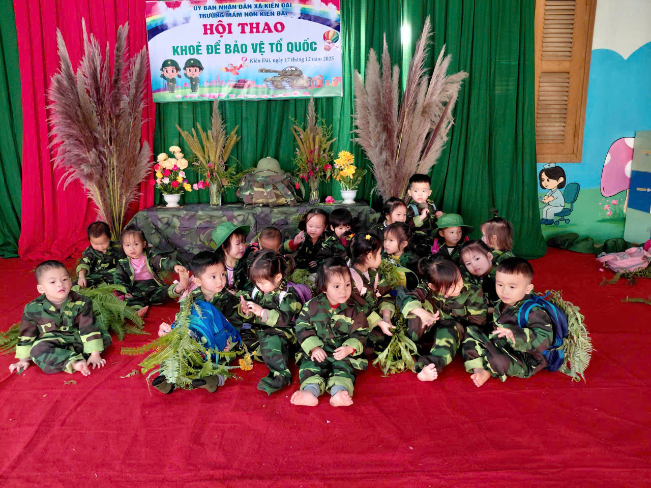 Cùng với đó, Trường Mầm non Kiên Đài đã tổ chức hoạt động trải nghiệm kết hợp Hội thao “Khỏe để bảo vệ Tổ quốc” với các nội dung vận động phù hợp với lứa tuổi mầm non. Hội thao thu hút sự tham gia hào hứng của trẻ ở các khối lớp, tạo không khí thi đua sôi nổi, góp phần rèn luyện thể chất, nâng cao sức khỏe, tinh thần đoàn kết và ý thức tập thể cho các em.