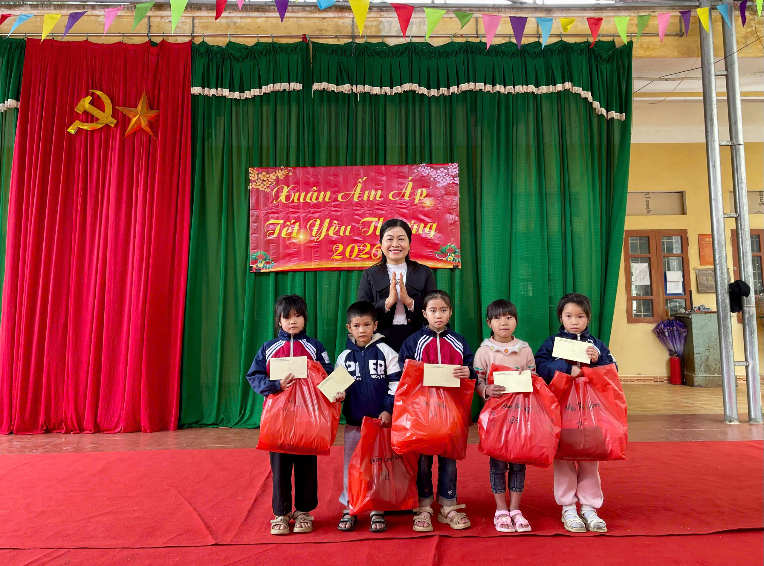 Nhân dịp này, Ủy ban MTTQ tỉnh và nhiều cá nhân đã trao tặng nhiều phần quà ý nghĩa tới học sinh có hoàn cảnh khó khăn, học sinh nghèo vượt khó vươn lên trong học tập, gồm: 20 suất quà của Ủy ban MTTQ tỉnh; 5 suất quà của đồng chí Lâm Thị Hồng Ngân, Bí thư Đảng ủy, Chủ tịch HĐND xã; 5 suất quà của đồng chí Hà Duy Hưng, Ủy viên Ban Thường vụ Đảng ủy, Phó Chủ tịch UBND xã; 1 suất quà của đồng chí Tạ Quốc Hoàn, Phó Chủ tịch UBND xã; cùng 10 suất quà do các thầy, cô giáo trong nhà trường trao tặng. Những phần quà tuy giá trị vật chất không lớn nhưng thể hiện sự quan tâm, sẻ chia, góp phần động viên các em nỗ lực vươn lên trong học tập và cuộc sống.
