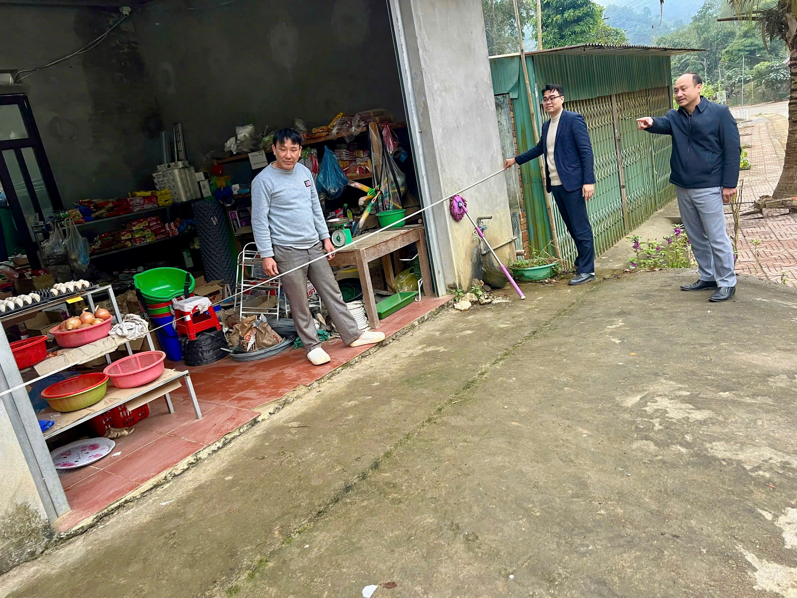 Lãnh đạo UBND xã trực tiếp xuống thực địa tại thôn Khun Cúc để kiểm tra hiện trạng thửa đất liên quan đến kiến nghị của công dân.