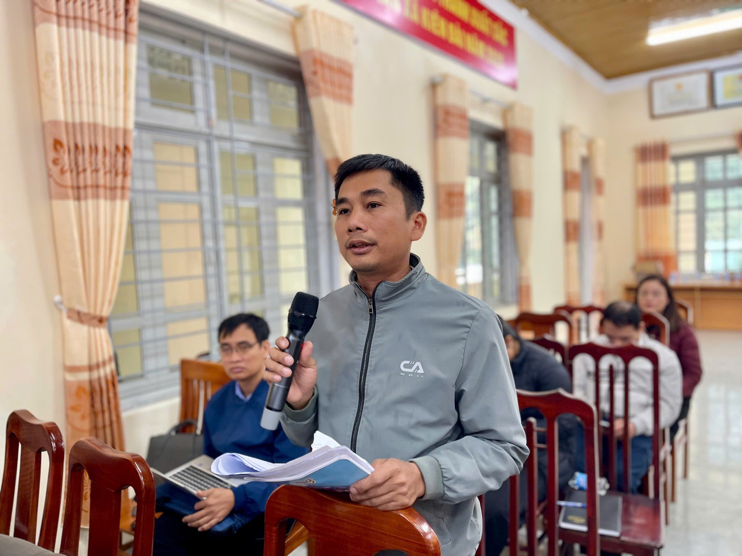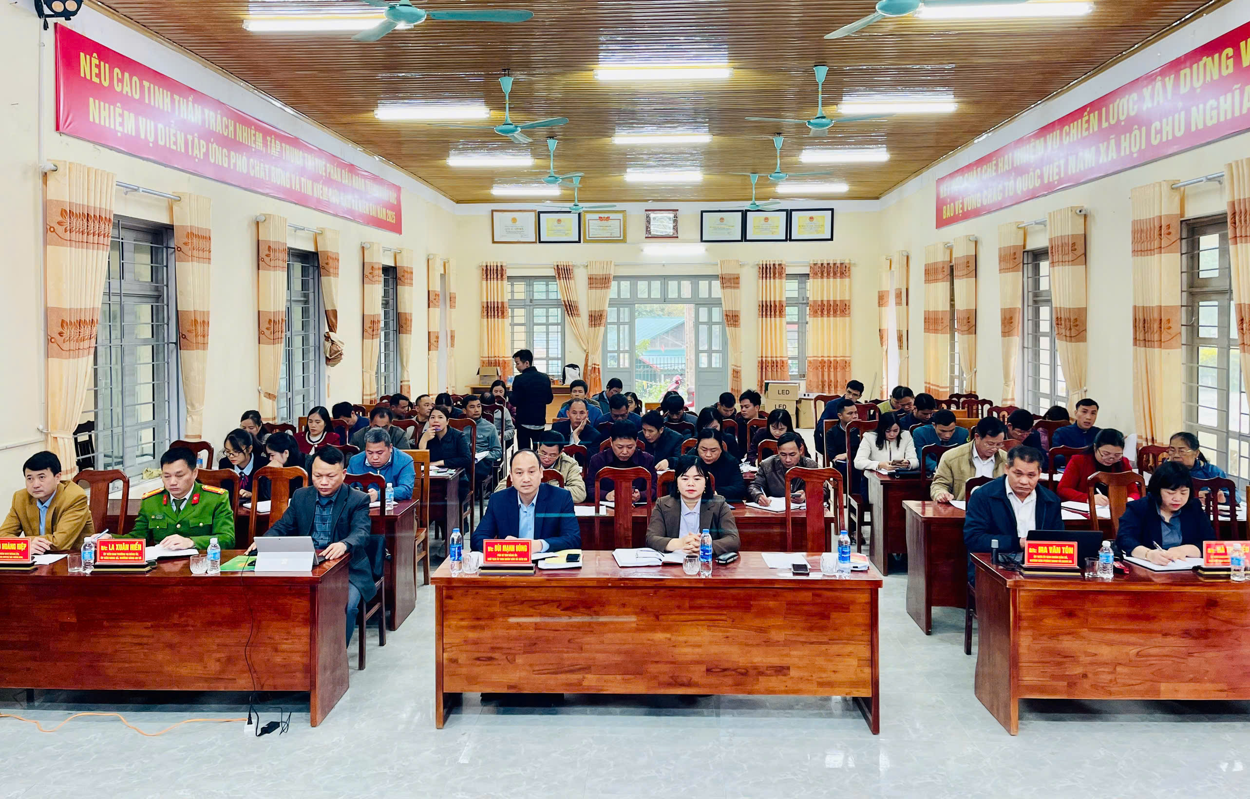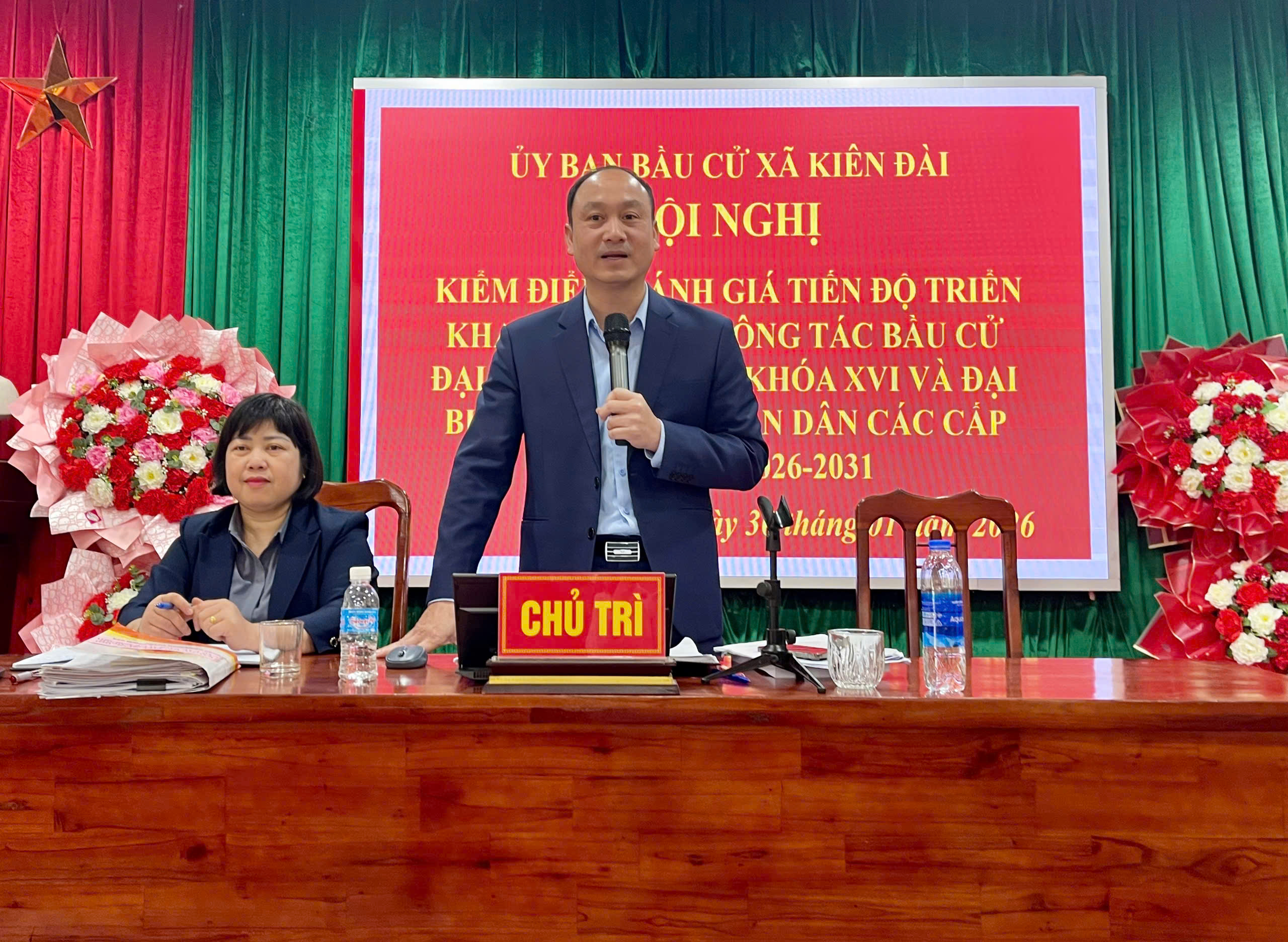 Dự và chủ trì hội nghị có các đồng chí: Bùi Mạnh Hùng, Phó Bí thư Đảng ủy, Chủ tịch Ủy ban nhân dân xã, Chủ tịch Ủy ban bầu cử xã; Đỗ Hoàng Hiệp, Ủy viên BTV Đảng ủy, Chủ tịch Ủy ban Mặt trận Tổ quốc Việt Nam xã, Phó chủ tịch Ủy ban bầu cử xã; Hà Thị Hiếu, Ủy viên BCH Đảng bộ xã, Phó chủ tịch Hội đồng nhân dân xã, Phó Chủ tịch Thường trực Ủy ban bầu cử xã.