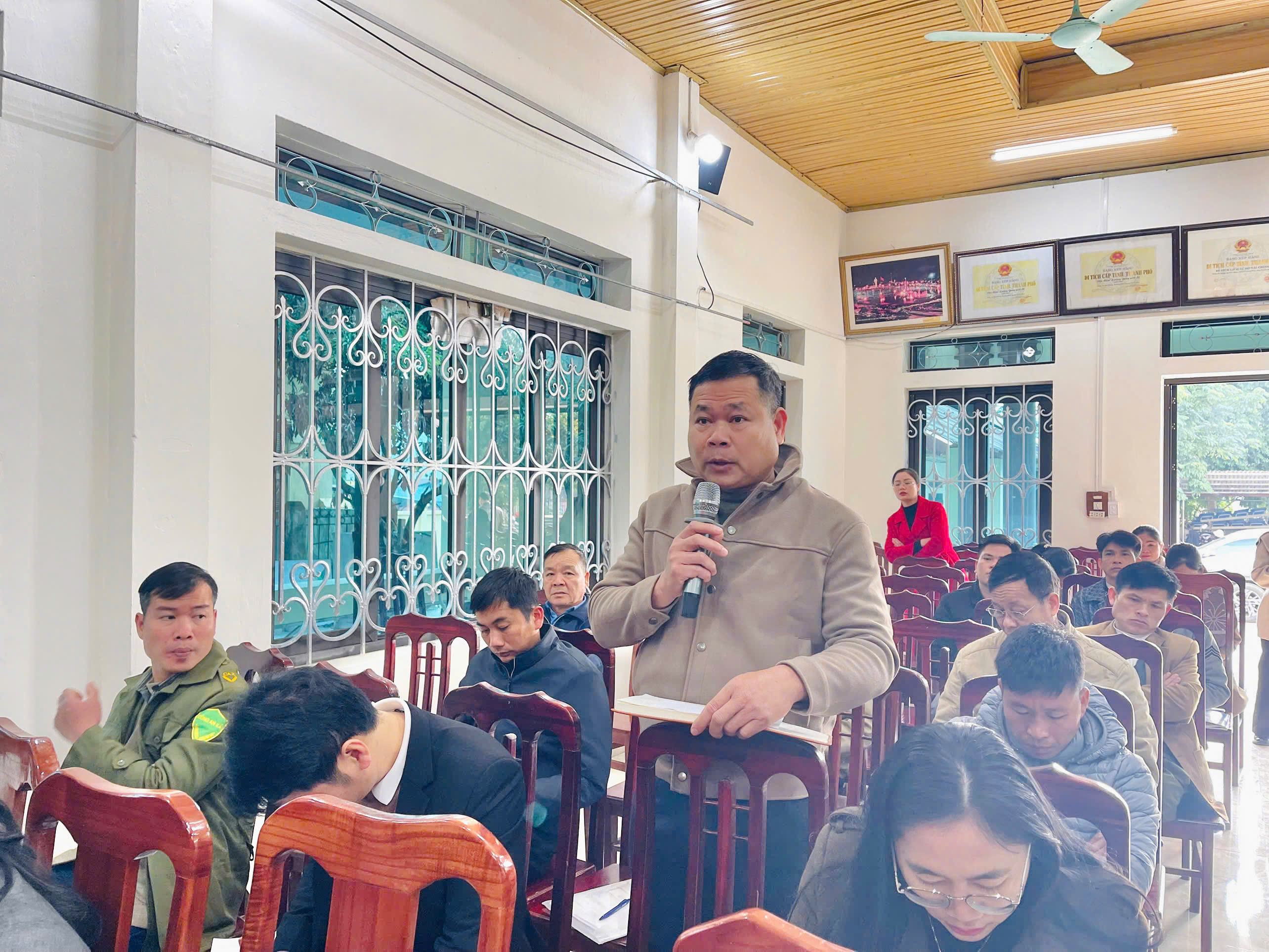 Đồng chí Bùi Mạnh Hùng, Phó Bí thư Đảng ủy, Chủ tịch UBND xã chì thảo luận.