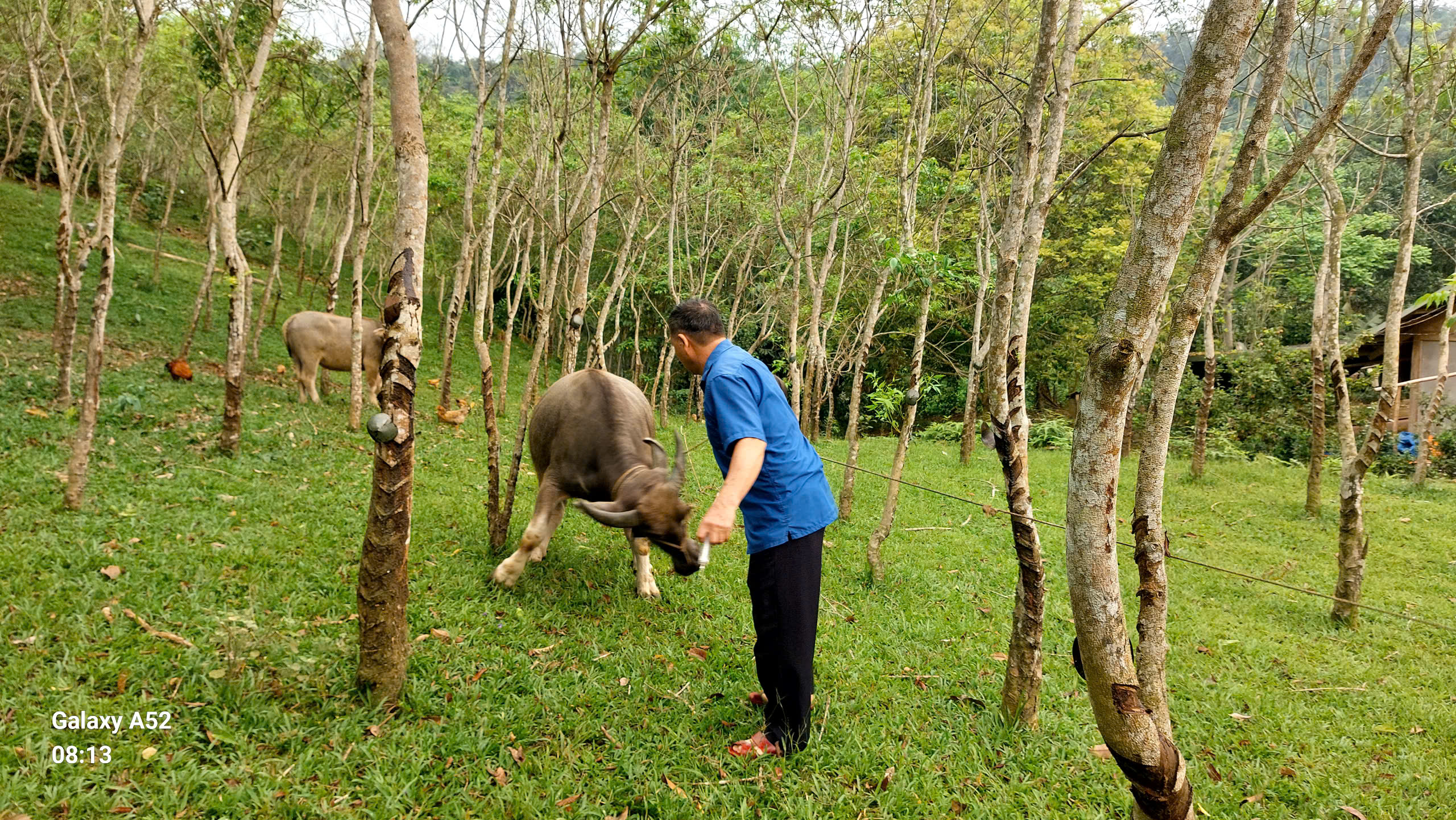 Cán bộ thú y tiêm phòng cho trâu