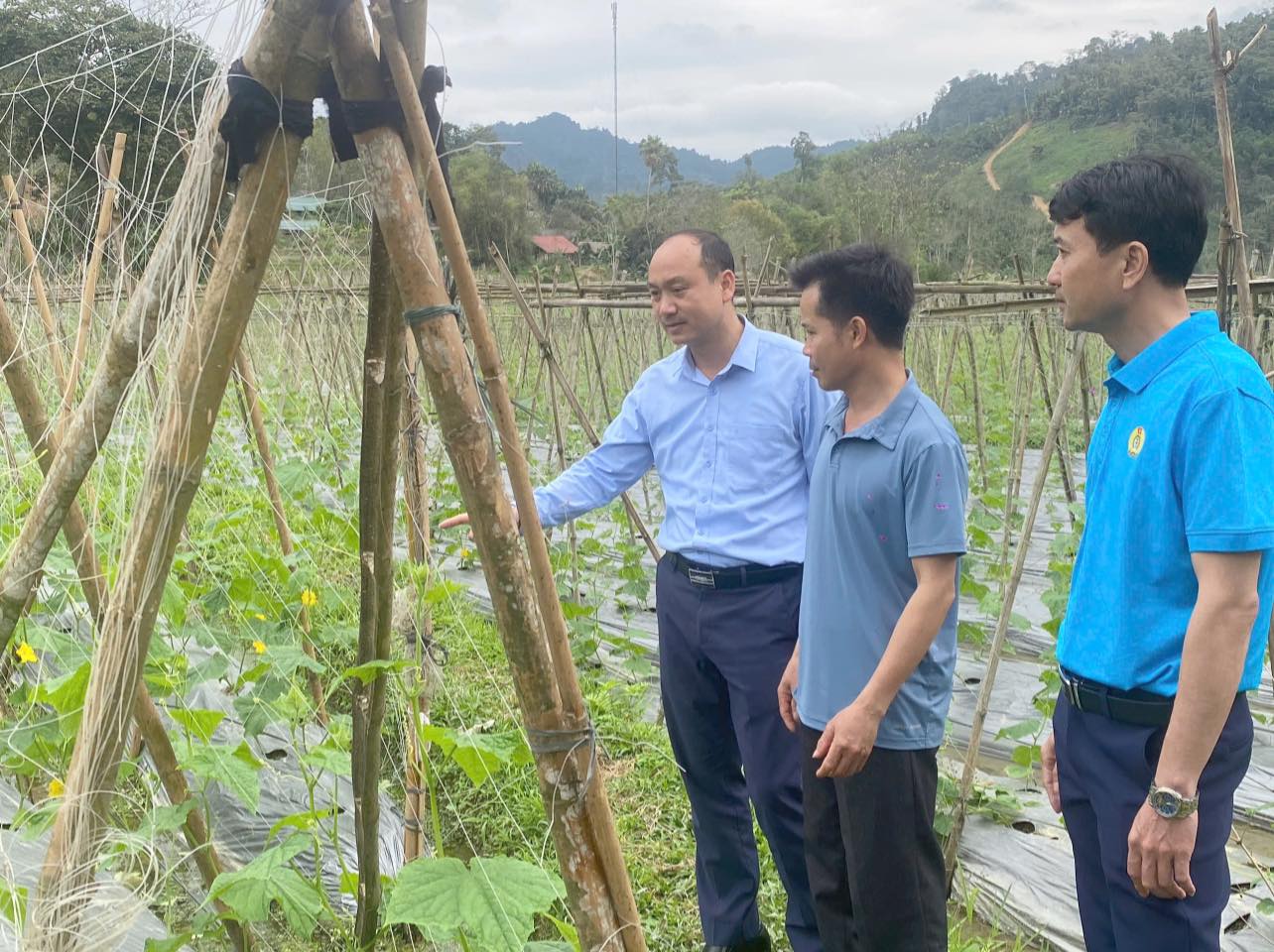 Lãnh đạo UBND xã Kiên Đài thăm mô hình trồng bí thơm Bắc Kạn tại thôn Khun Vìn
