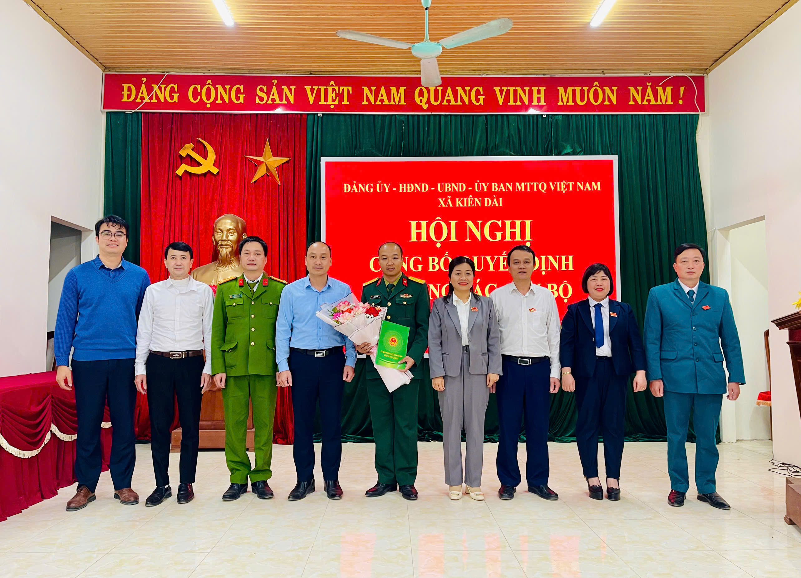 Chiều ngày 16/1/2026, Đảng uỷ - HĐND - UBND - Uỷ ban MTTQ xã Kiên Đài đã tổ chức Hội nghị công bố các Quyết định về việc điều động bổ nhiệm cán bộ giữ chức vụ Chỉ huy trưởng ban Chỉ huy quân sự xã và chức vụ Phó Chỉ huy trưởng Ban Chỉ huy quân sự xã.