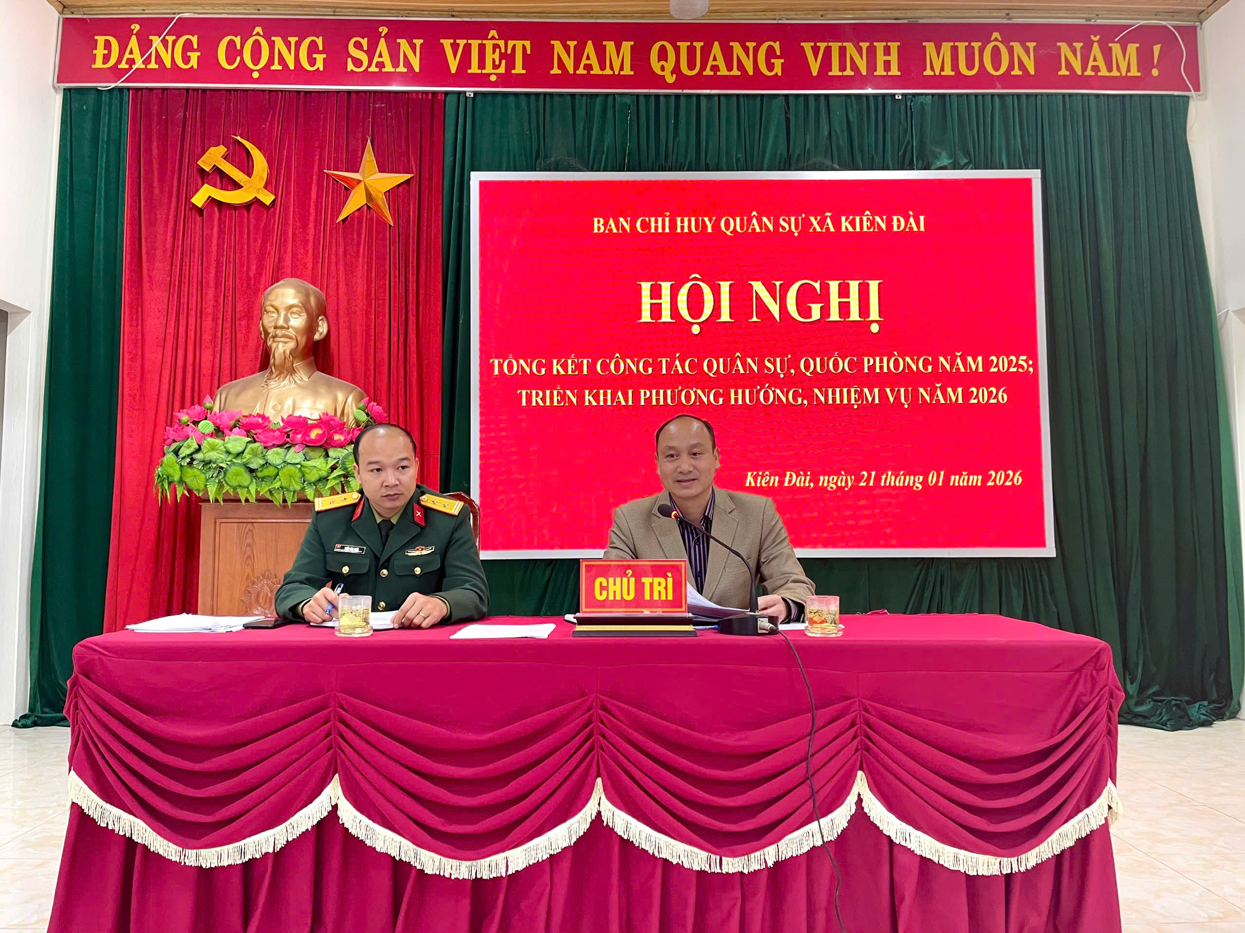 Chiều ngày 21/01/2026, Ban Chỉ huy Quân sự xã Kiên Đài tổ chức Hội nghị tổng kết công tác quân sự, quốc phòng năm 2025; triển khai phương hướng, nhiệm vụ năm 2026.