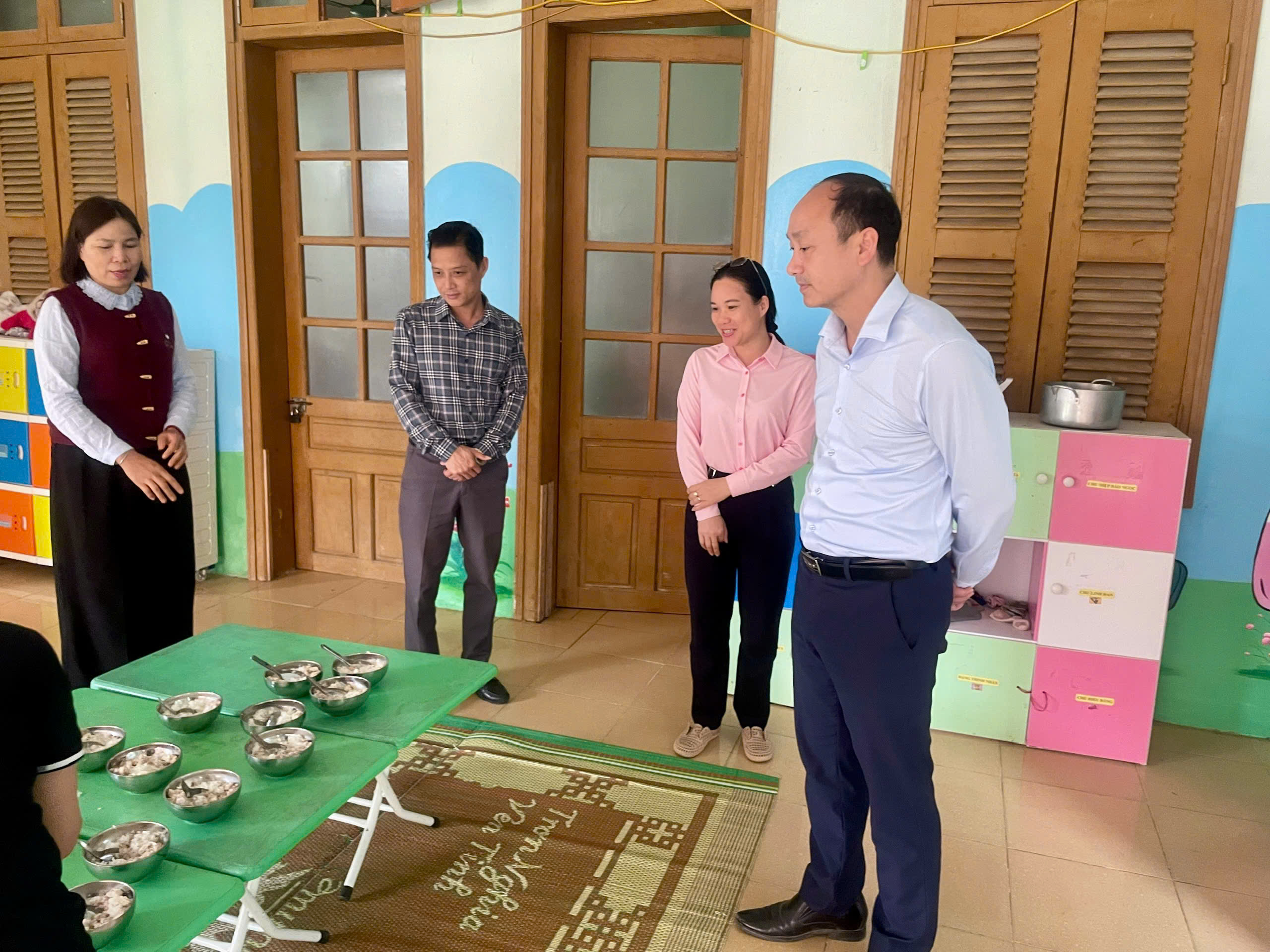 Lãnh đạo UBND xã Kiên Đài kiểm tra chất lượng bữa ăn bán trú tại các trường học trên địa bàn xã